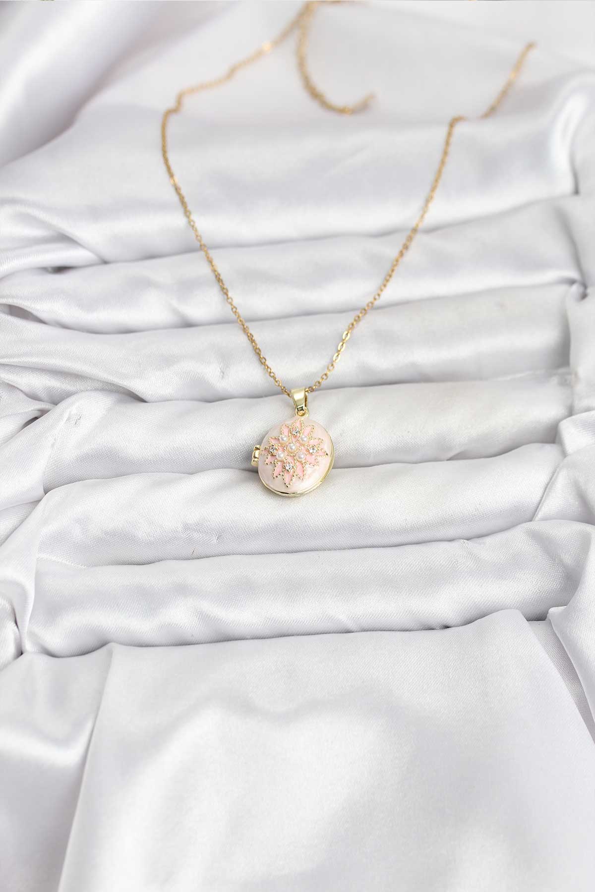 EBJ 316L Çelik Zincir Gold Renk Mineli Lotus Model Açılabilir Kadın Kolye - Enschede