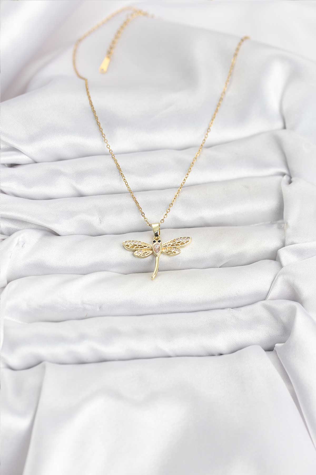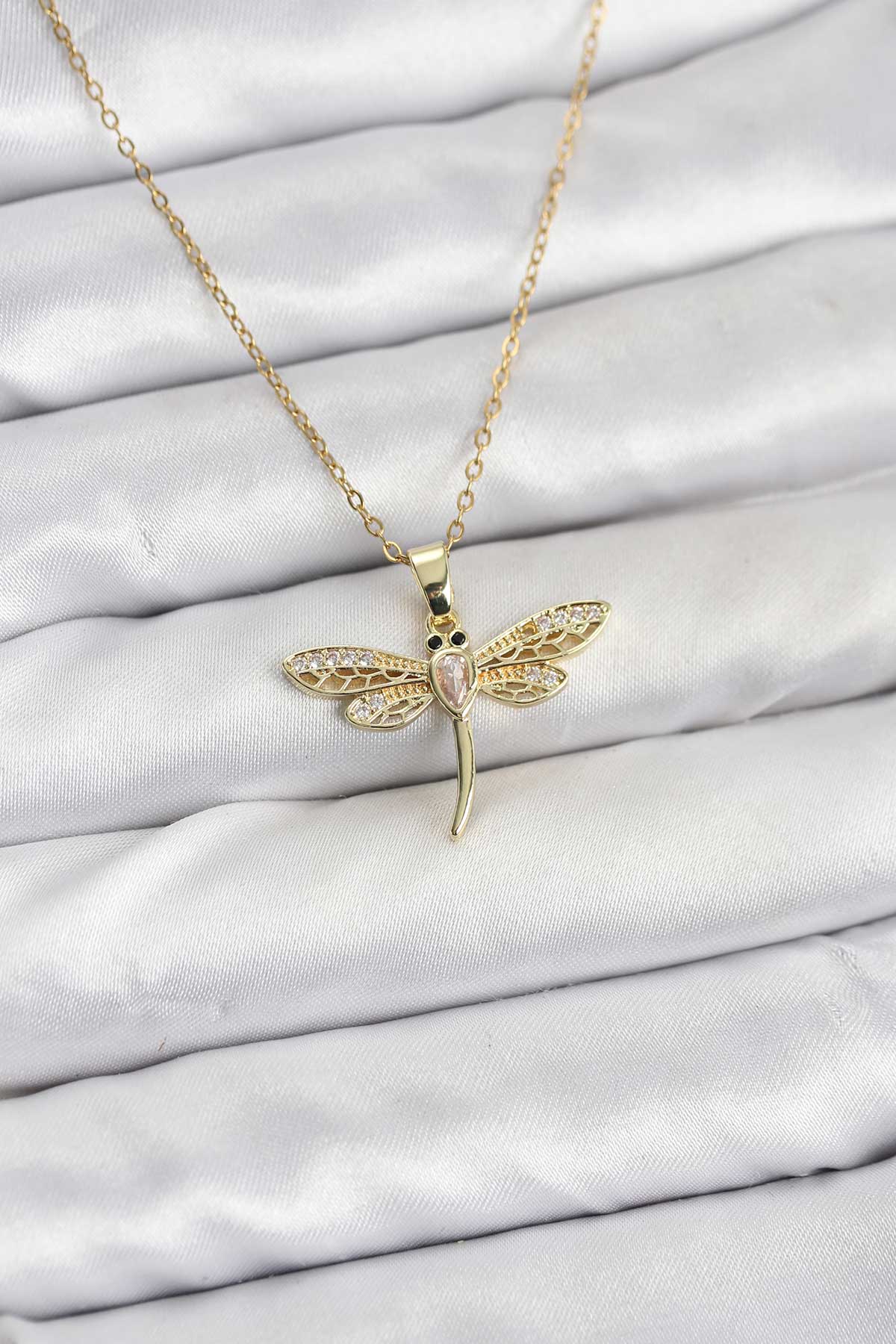 EBJ 316L Çelik Zincir Gold Renk Yusufçuk Model Kadın Kolye - Edina