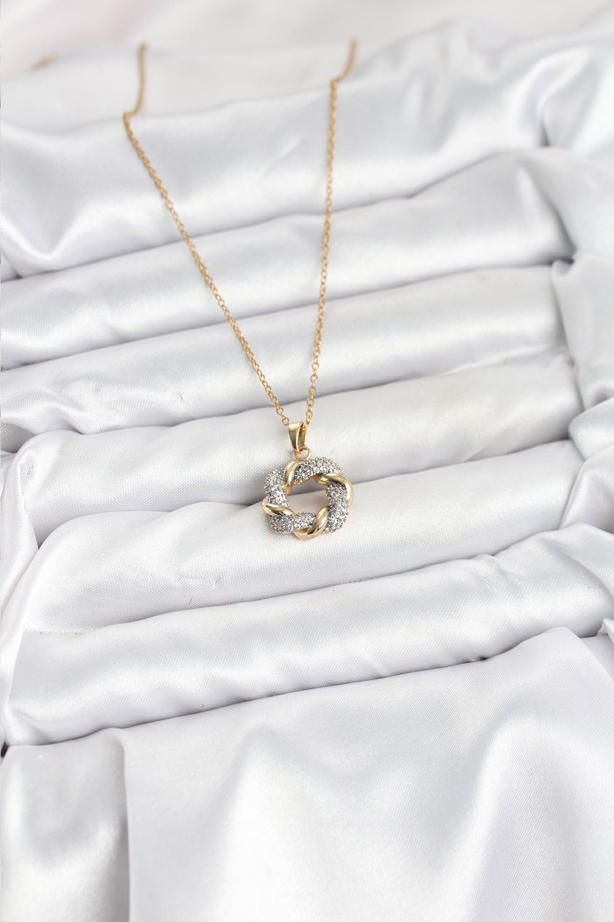 EBJ 316L Çelik Zincir Gold Renk Zirkon Taşlı Sarmal Model Kadın Kolye - Roncaglia