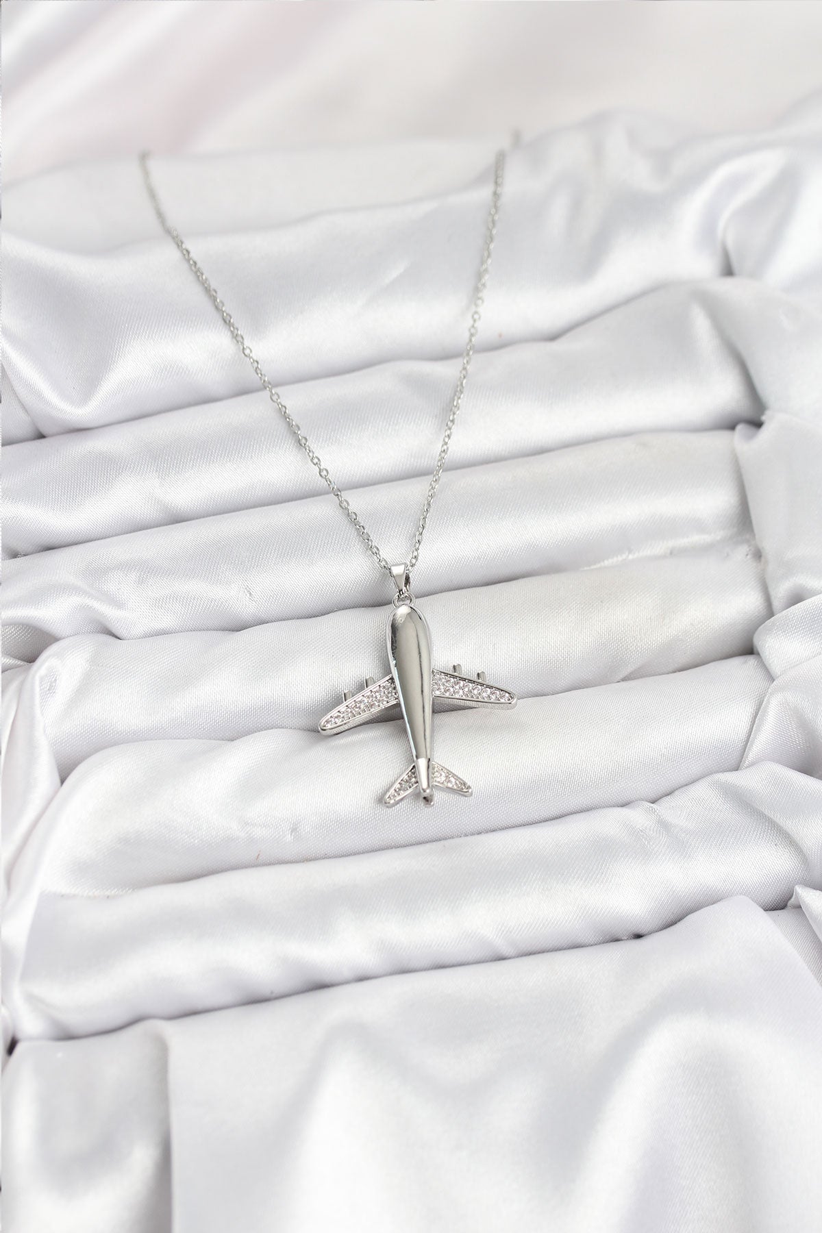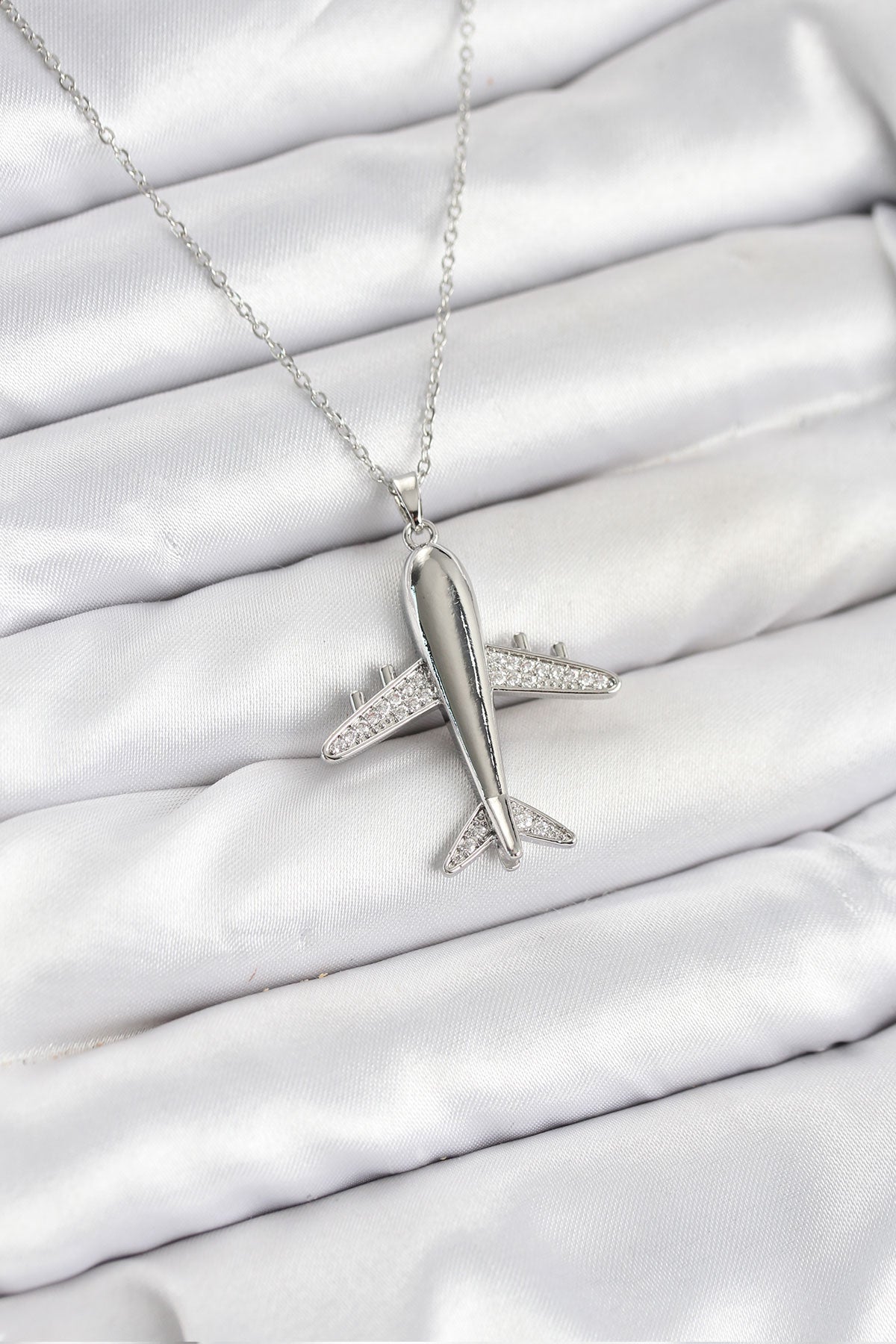 EBJ 316L Çelik Zincir Gümüş Renk Uçak Model Kadın Kolye - Southampton