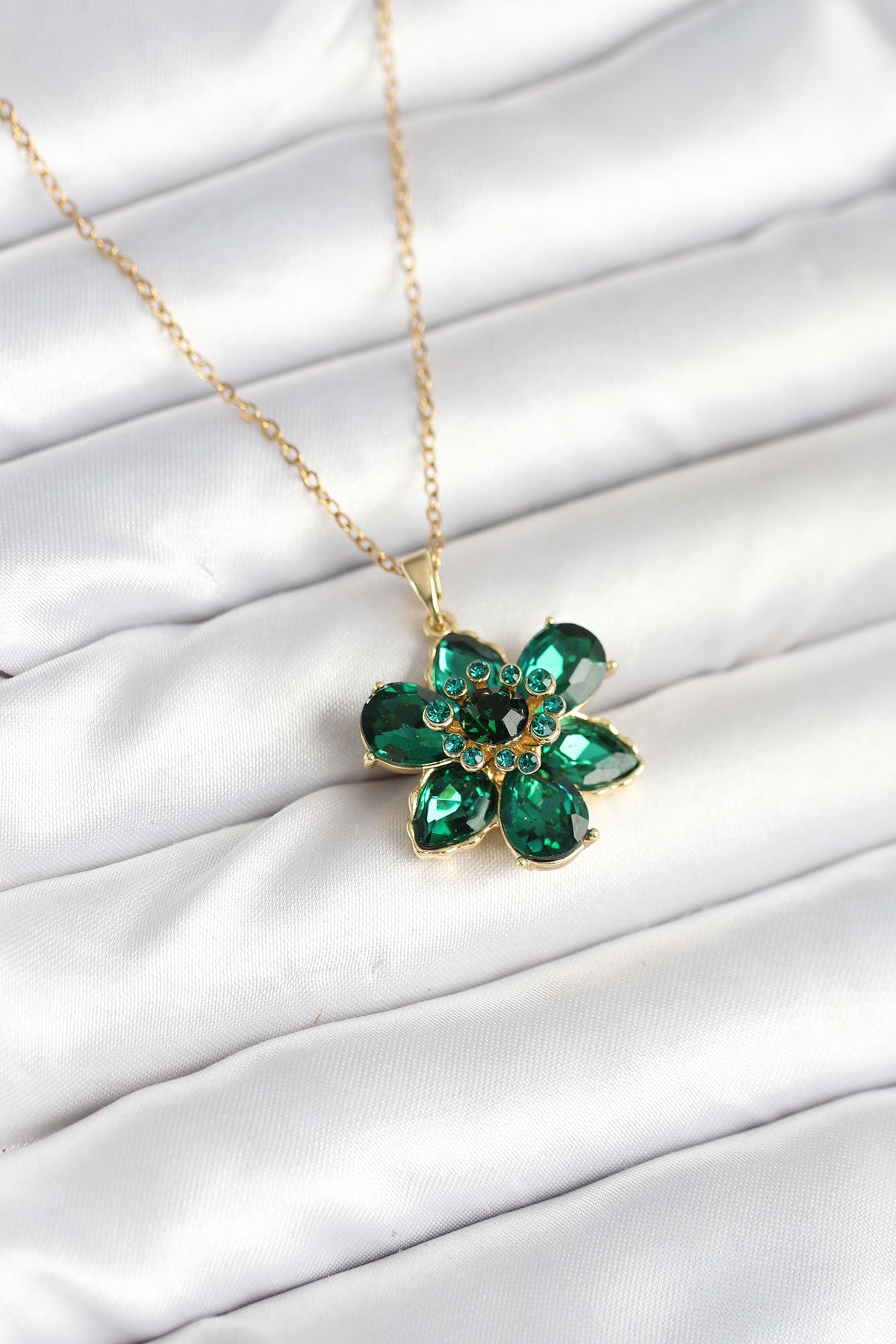 EBJ 316L Çelik Zincirli Yeşil Çiçek Model Kadın Kolye - Majadahonda