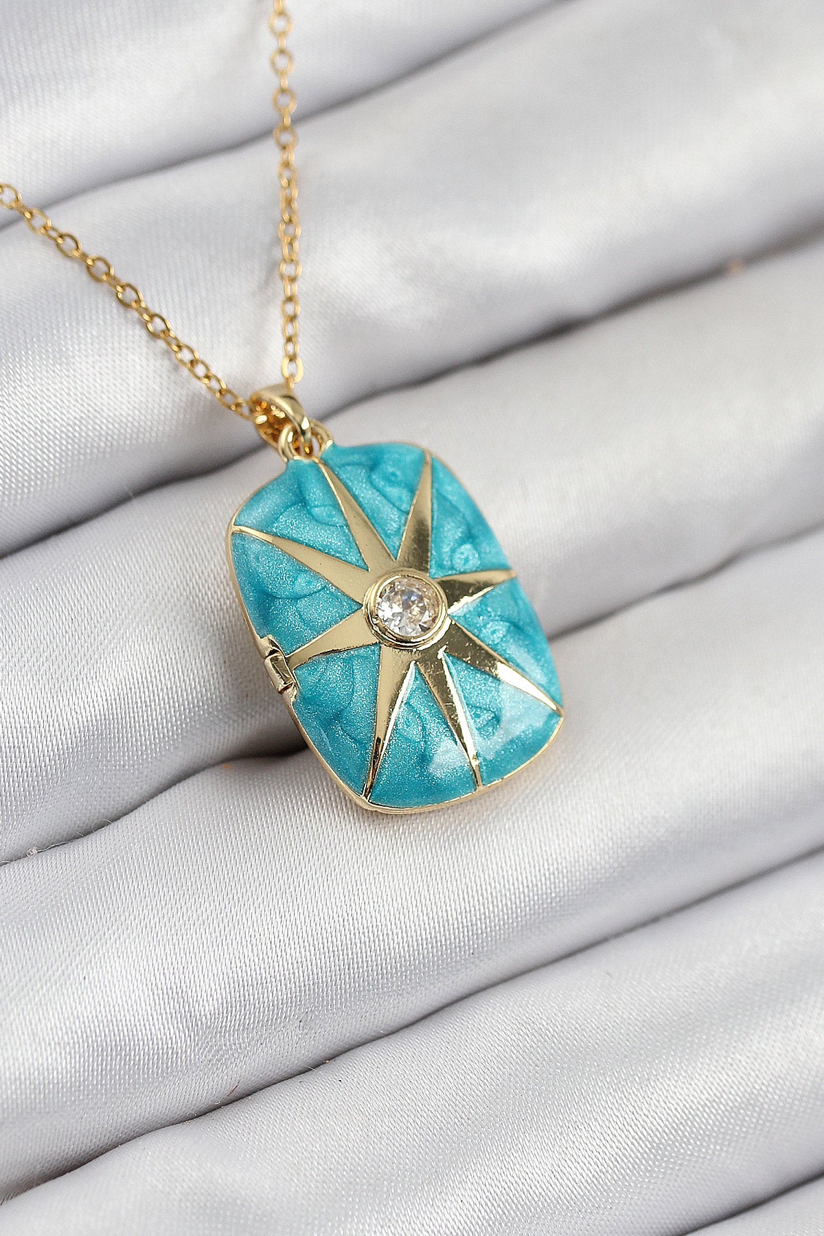 EBJ 316L Çelik Zirkon Taşlı Açılabilr Kapaklı Kutup Yıldzı Model Gold Renk Kadın Kolye - Alytus