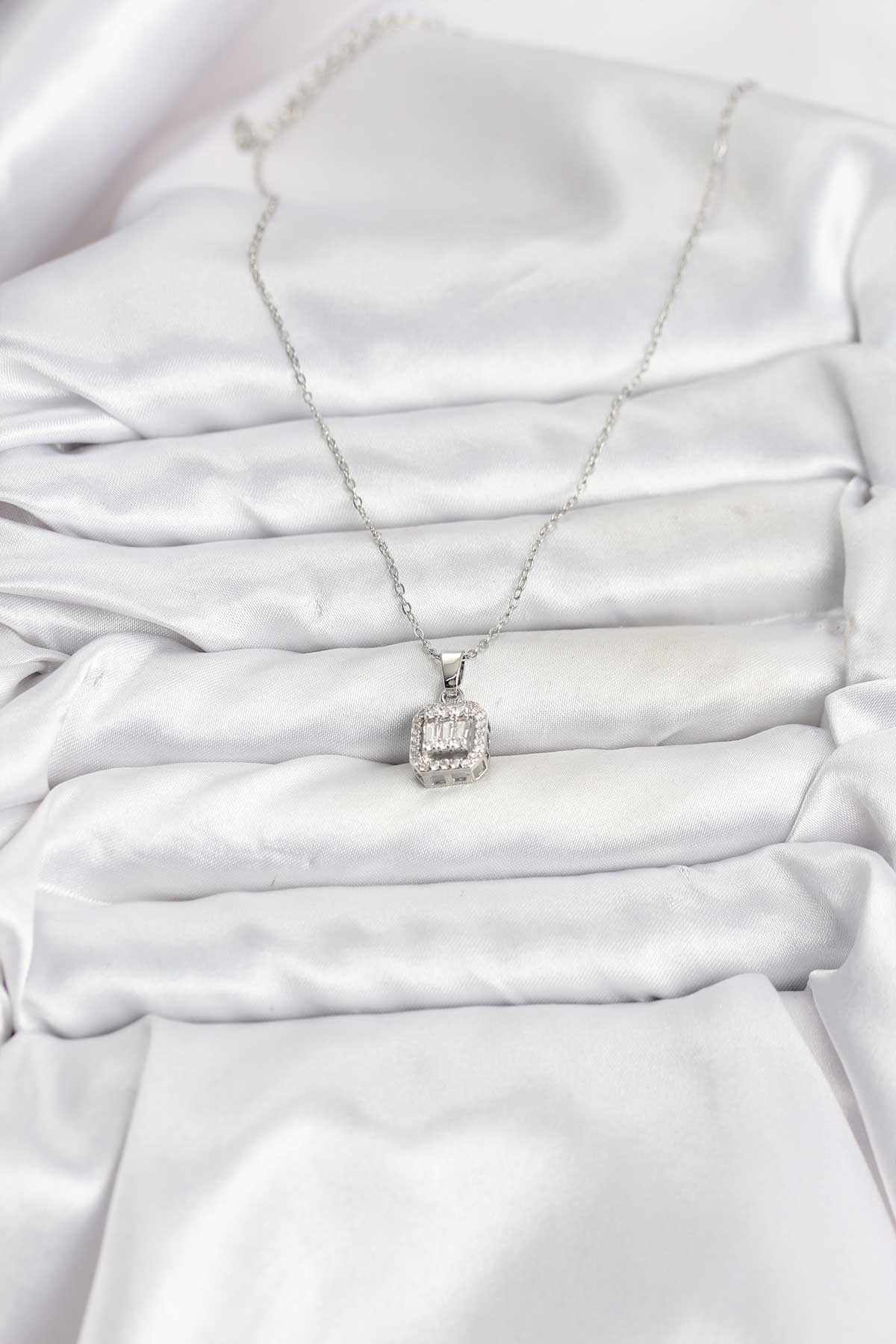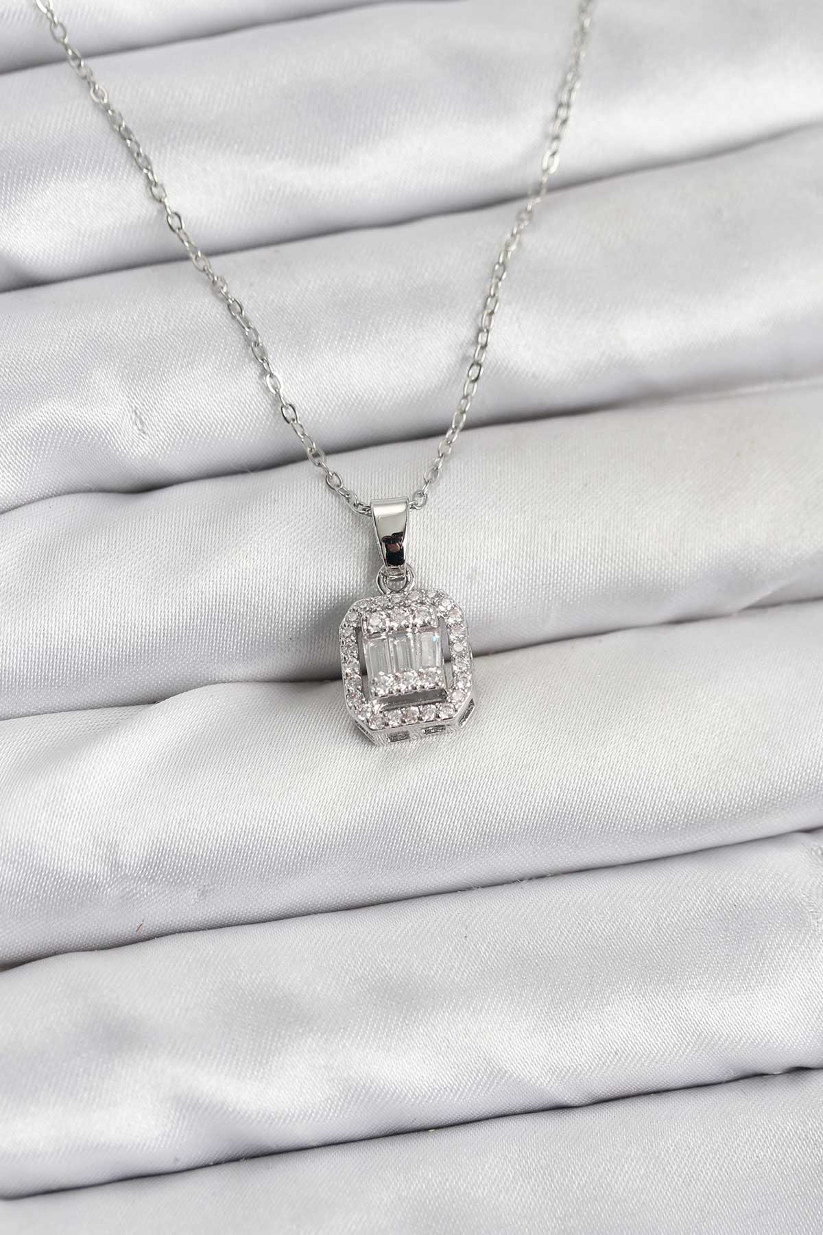 EBJ 316L Stainless Steel Chain Silver Color Baguette Model Women's Necklace - Barnstable