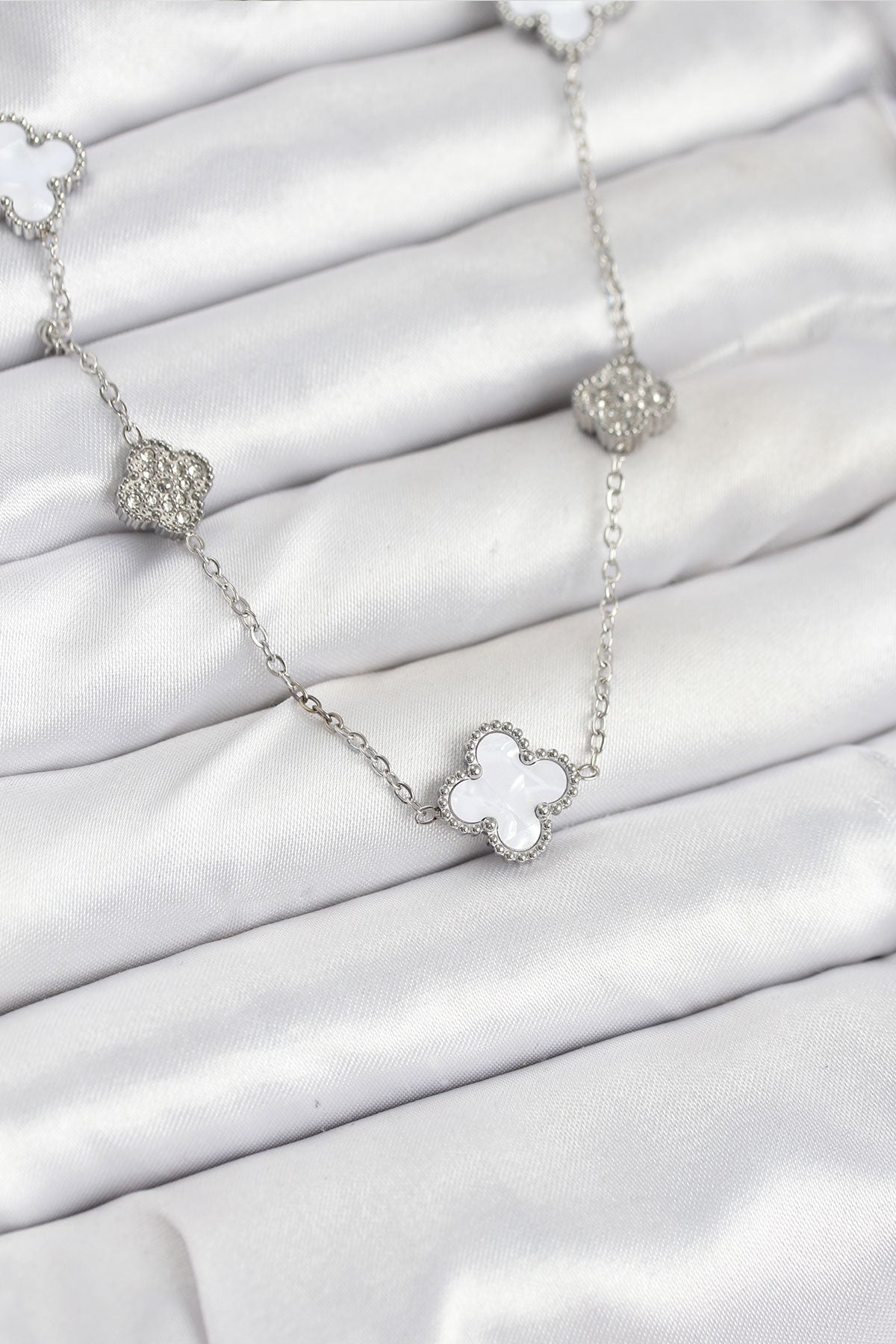 EBJ 316L Stainless Steel Chain Silver Color White and Zircon Stone Clover Women's Necklace - Gavá