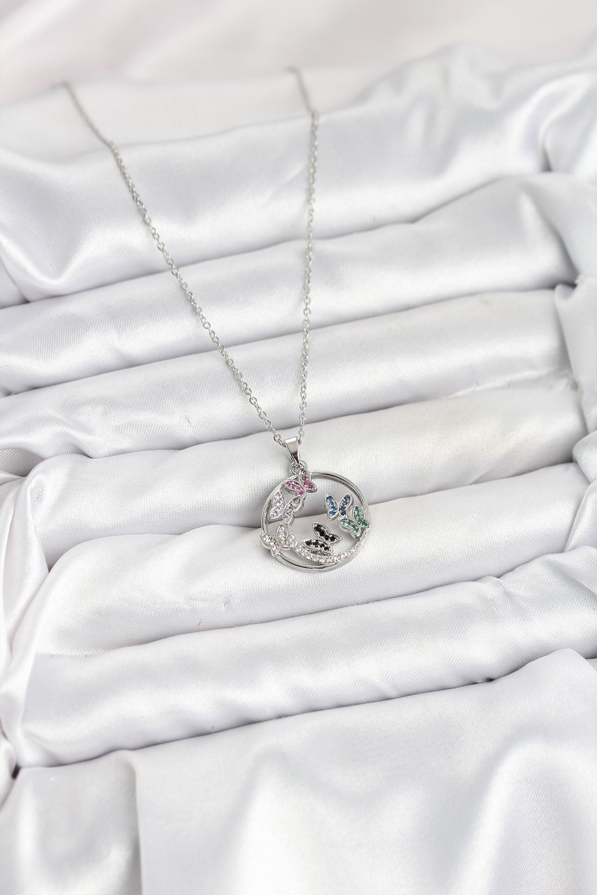 EBJ 316L Stainless Steel Chain Silver Color Zircon Stone Butterfly Women's Necklace - Venray