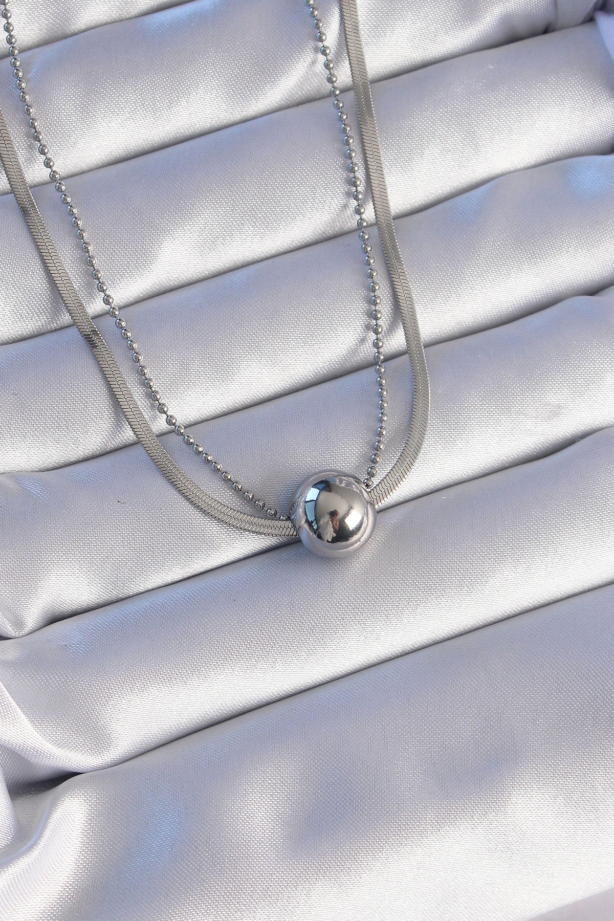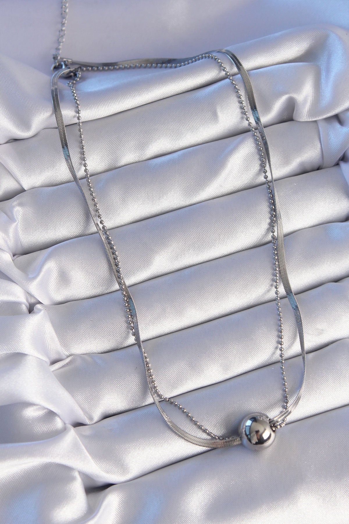 EBJ 316L Stainless Steel Double Chain Silver Color Bead Italian Style Necklace - Châlons-en-Champagne
