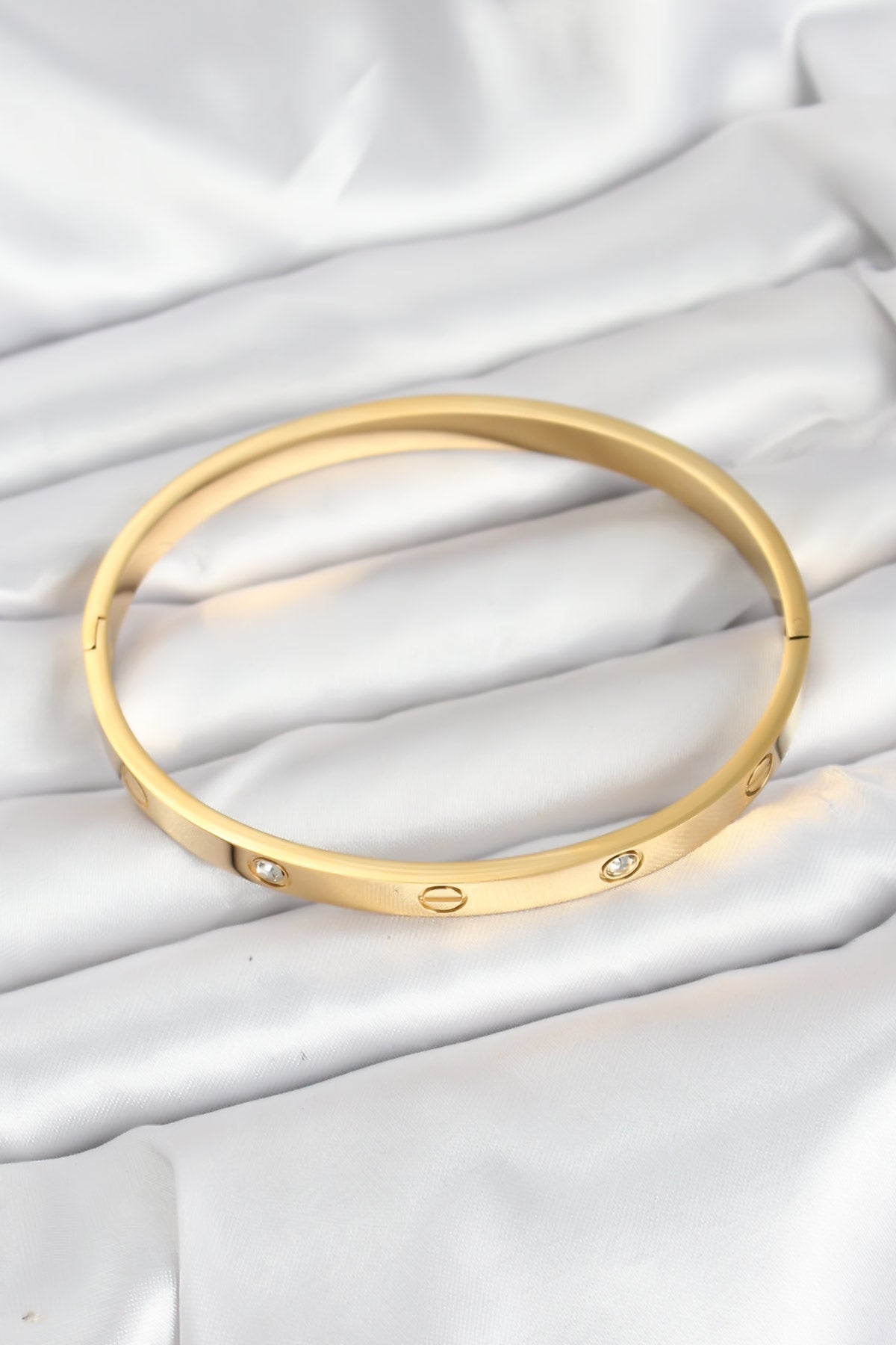 EBJ 316L Stainless Steel Gold Color Zircon Stone 65 mm Women's Cuff Bracelet - University Place
