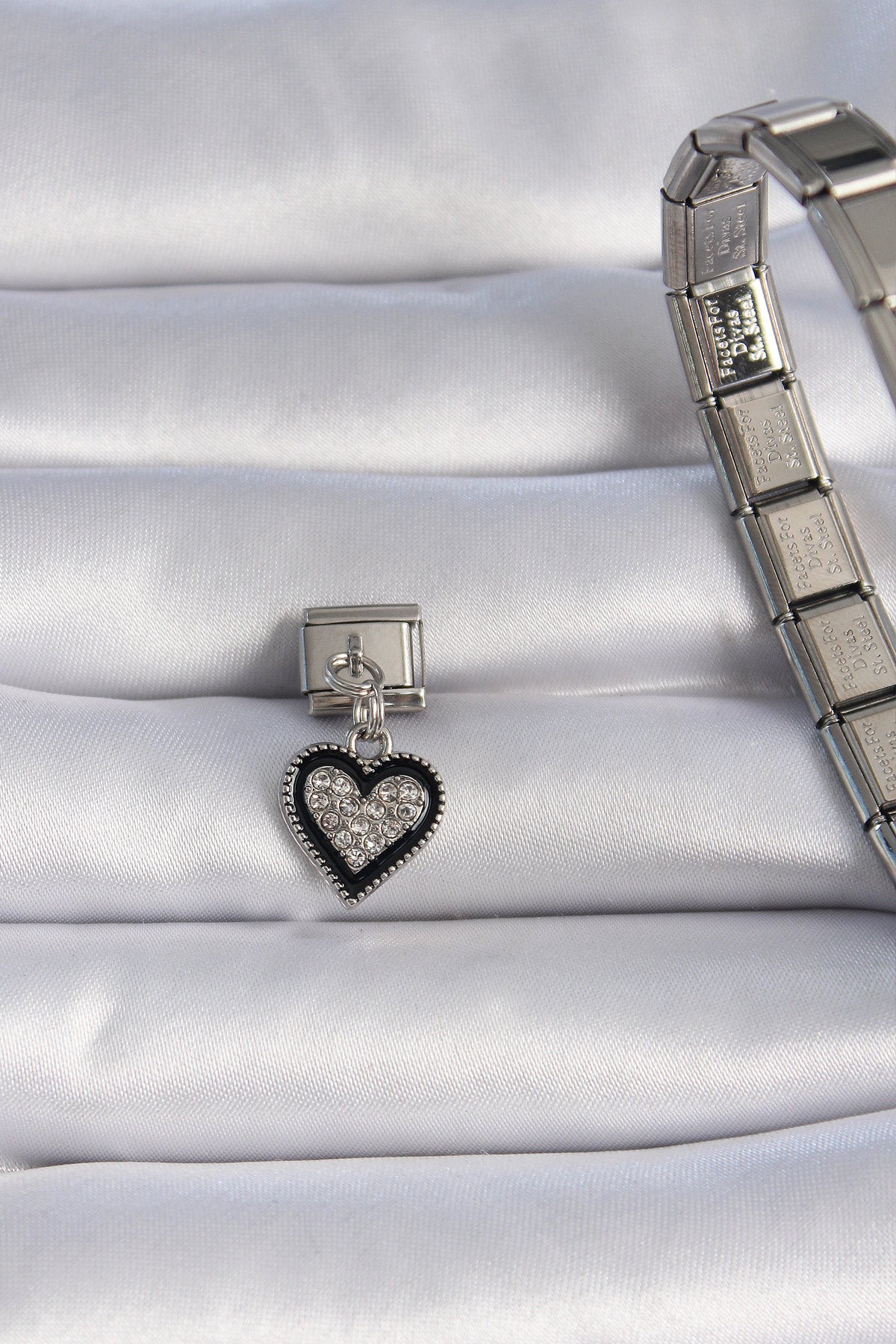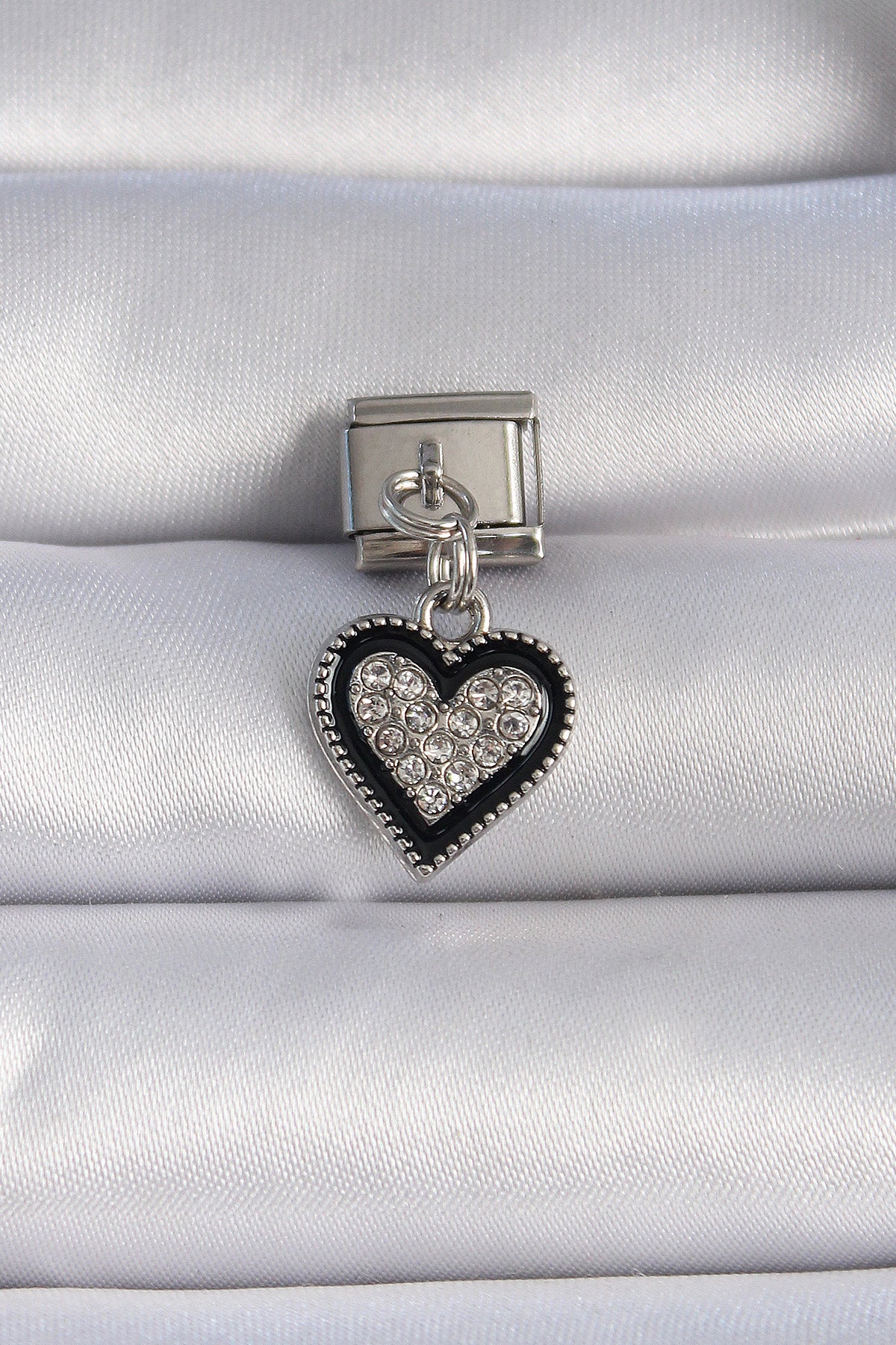 EBJ 316L Stainless Steel Silver Color Dangling Black Heart Figure Nomination Charm with Zircon Stone - Fontana