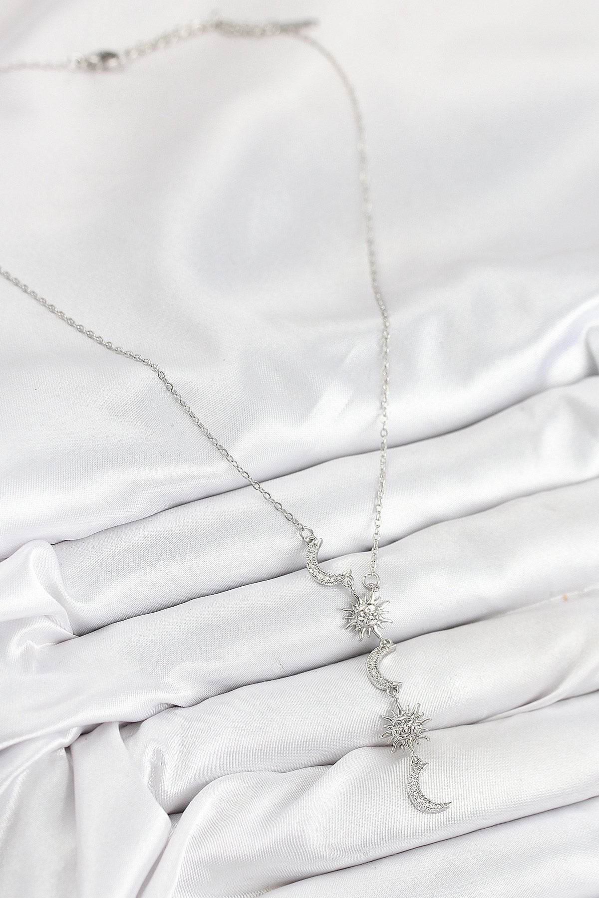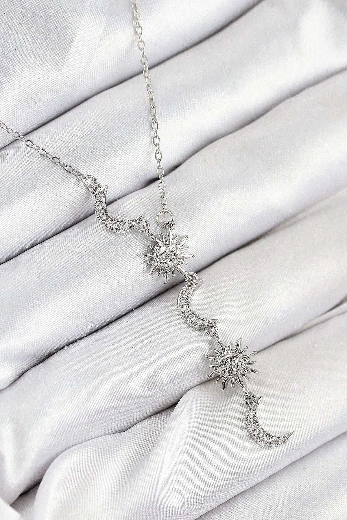 EBJ 316L Stainless Steel Sun and Moon Model Silver Color Women's Necklace with Zircon Stone - Brighton