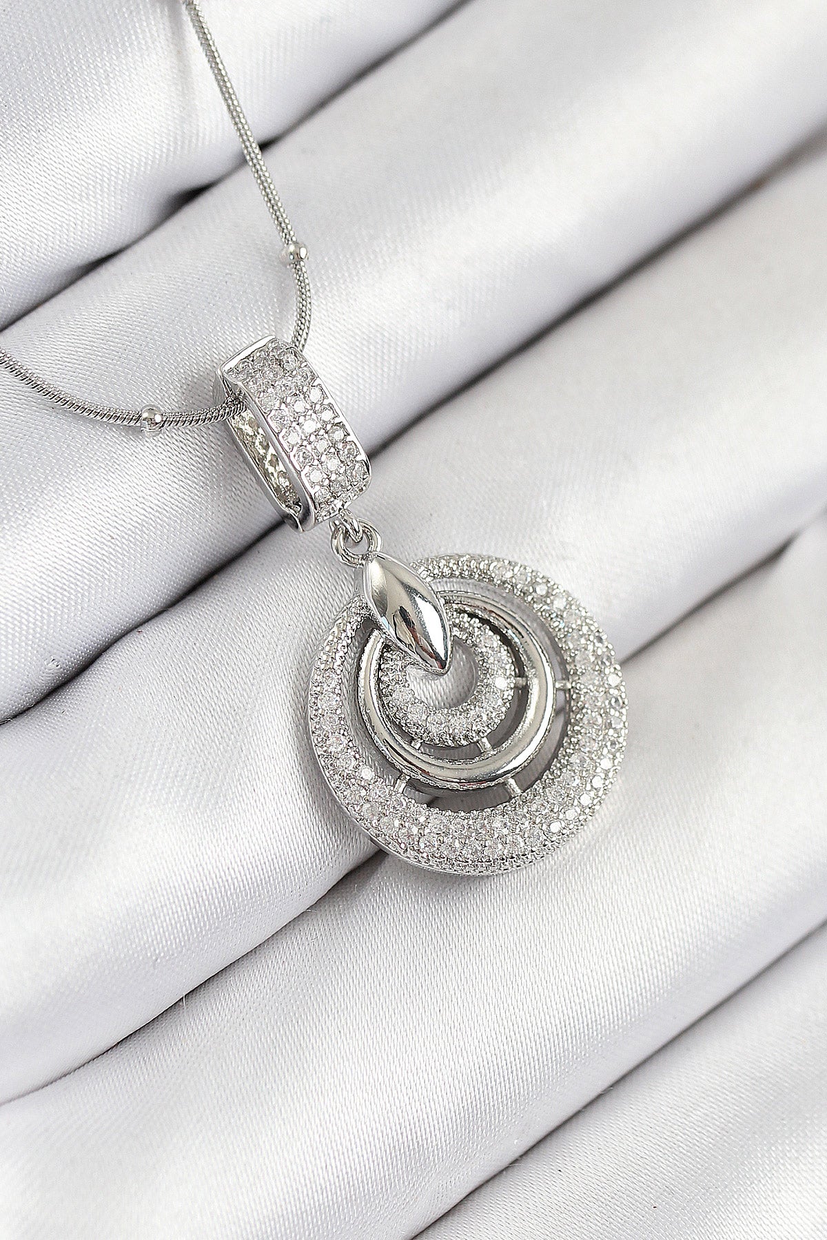 EBJ 316L Stainless Steel Zircon Stone Circle Design Silver Color Women's Necklace - Preston