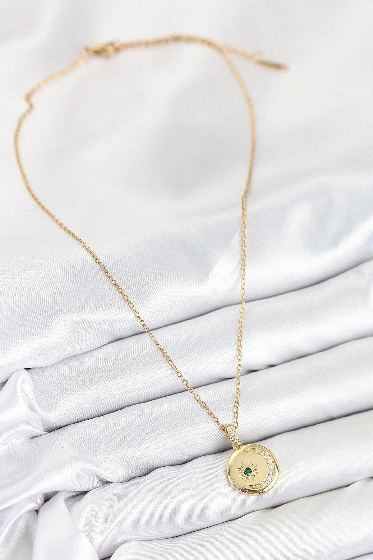 EBJ 316L Stainless Steel Zircon Stone Moon and Sun Model Gold Color Women's Necklace - Tarragona