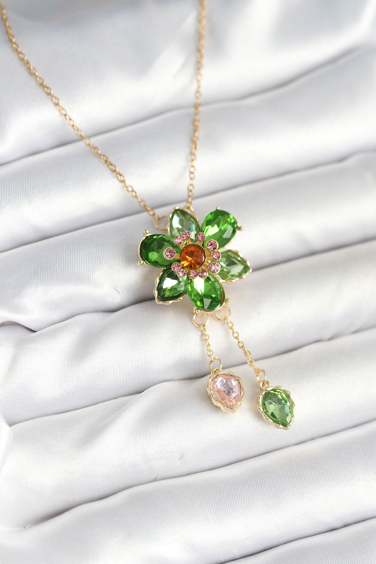 EBJ 316L Steel Chain Gold Color Flower Pattern Pendant Women's Necklace - Oldham