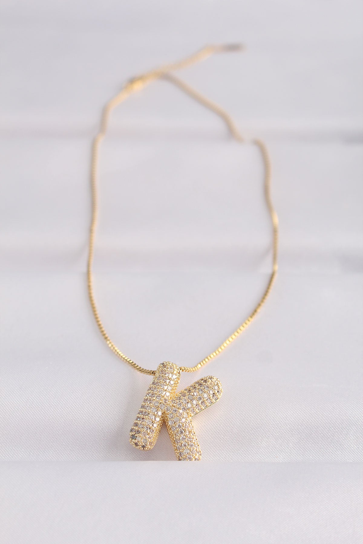 EBJ 316L Steel Chain with Zircon Stone Letter K Gold Color Bubble Necklace - Hutchinson
