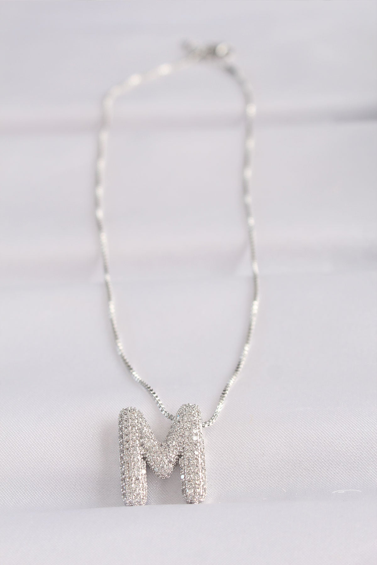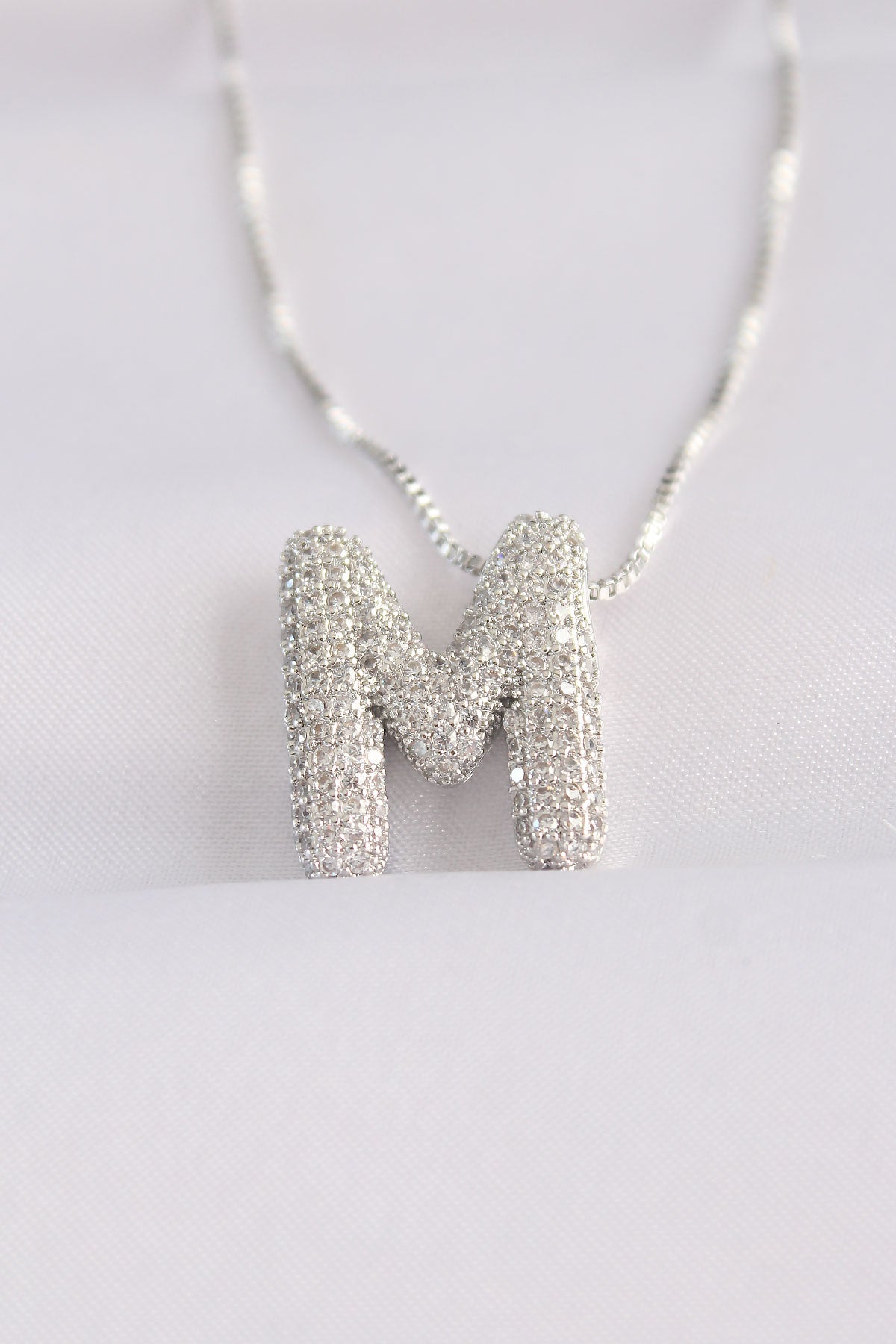 EBJ 316L Steel Chain with Zircon Stone M Initial Silver Color Bubble Necklace - Newark