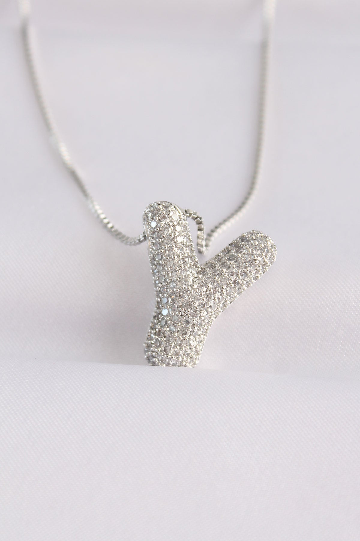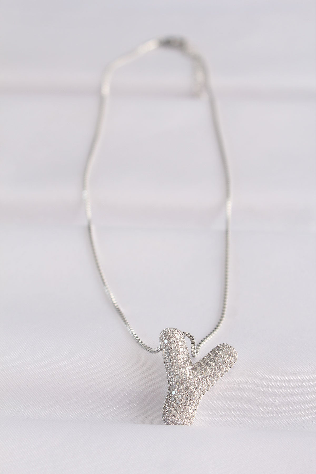 EBJ 316L Steel Chain with Zircon Stone Y Initial Silver Color Bubble Necklace - Hobart
