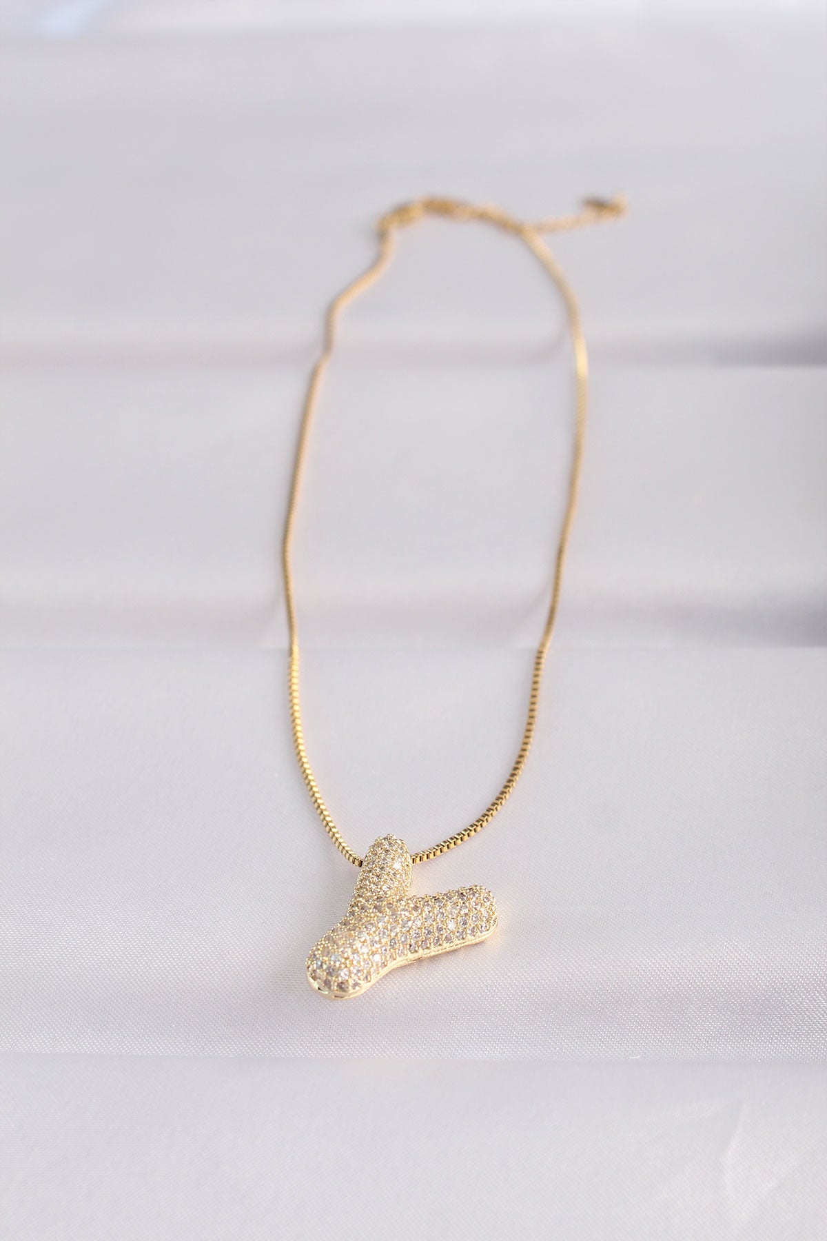 EBJ 316L Steel Chain Zircon Stone Y Initial Gold Color Bubble Necklace - Rochester
