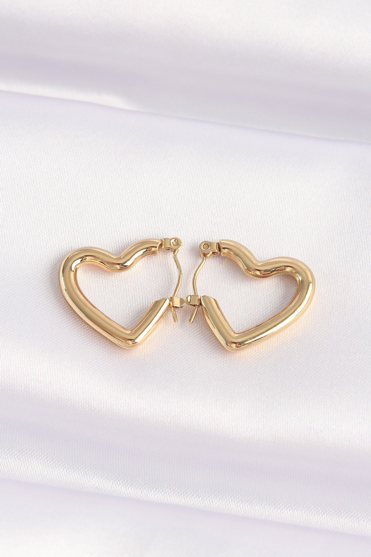 EBJ 316L Steel Gold Color Heart Earrings - Augusta