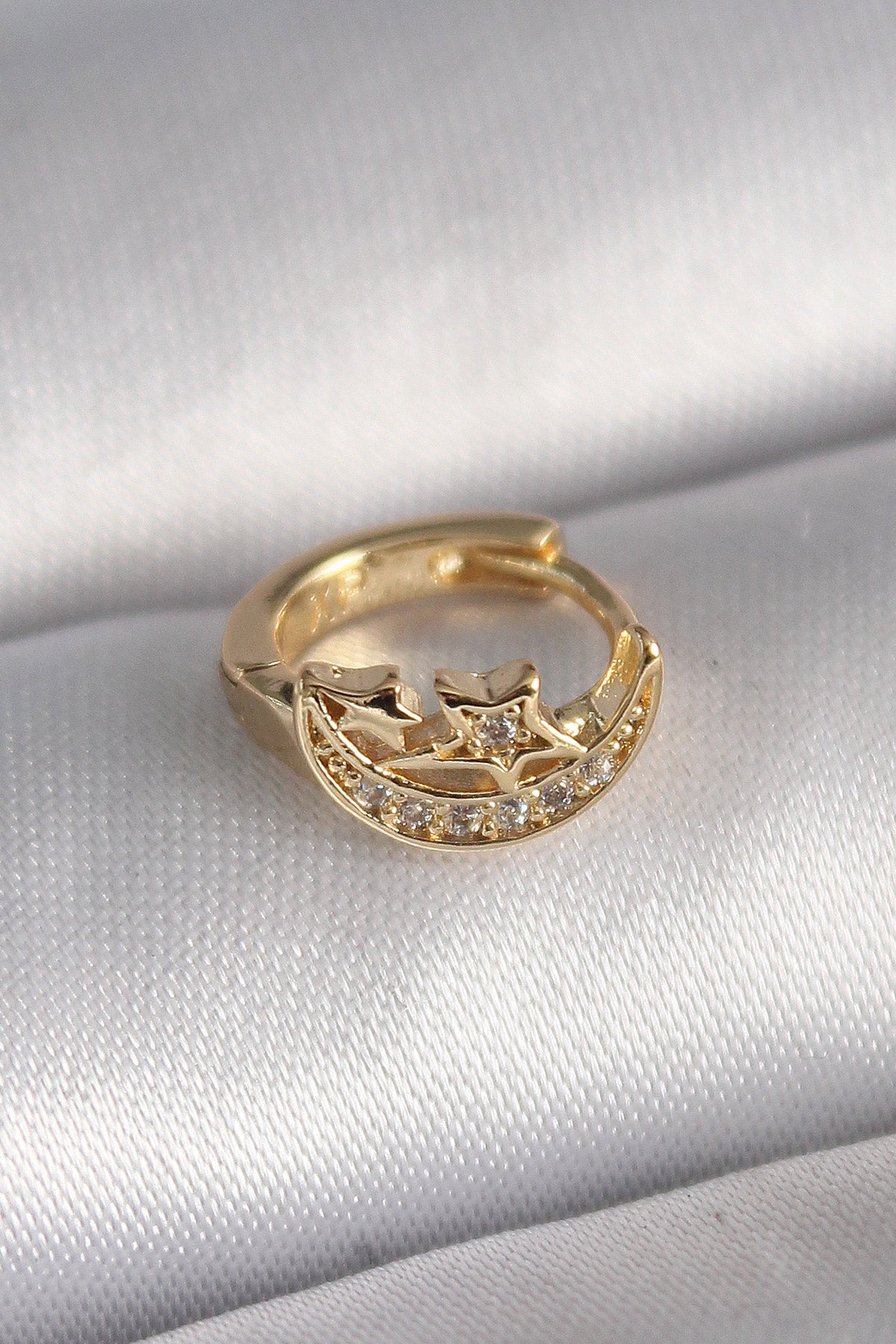 EBJ 316L Steel Gold Color Zircon Stone Star and Crescent Model Tragus Piercing - Skenderaj