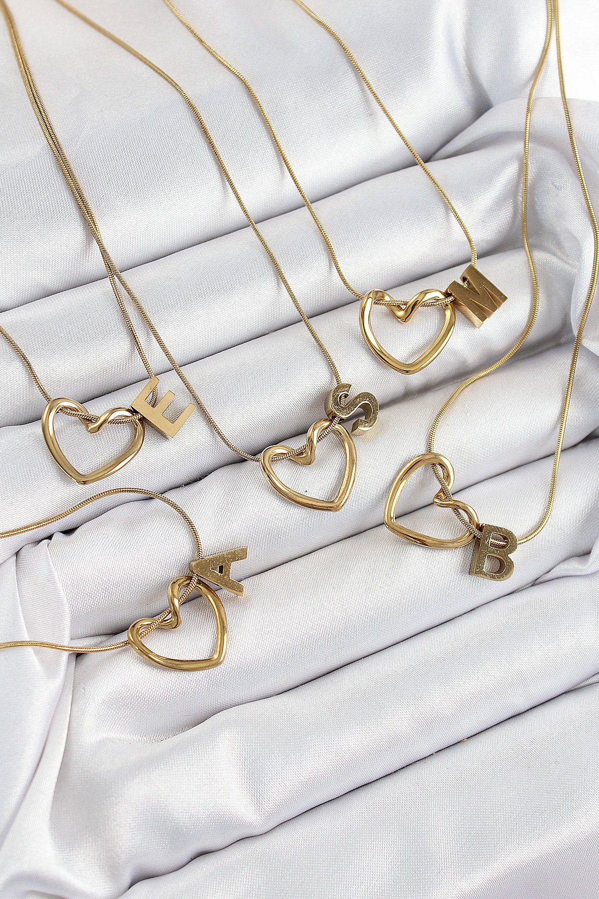 EBJ 316L Steel Heart Detailed Gold Color Letter Necklace 24-Pack Necklace - Alton