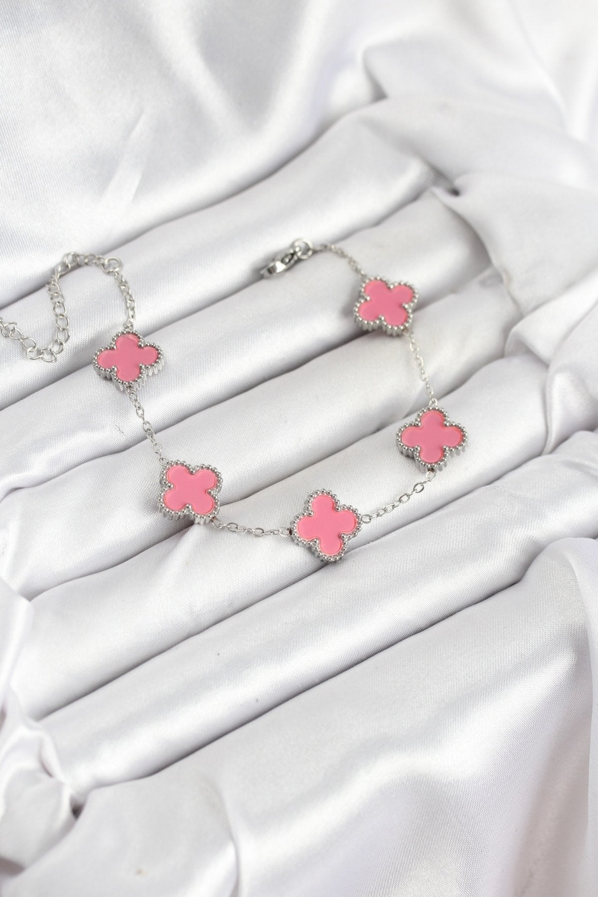 EBJ 316L Steel Silver Chain Pink Color Clover Bracelet - Mettmann