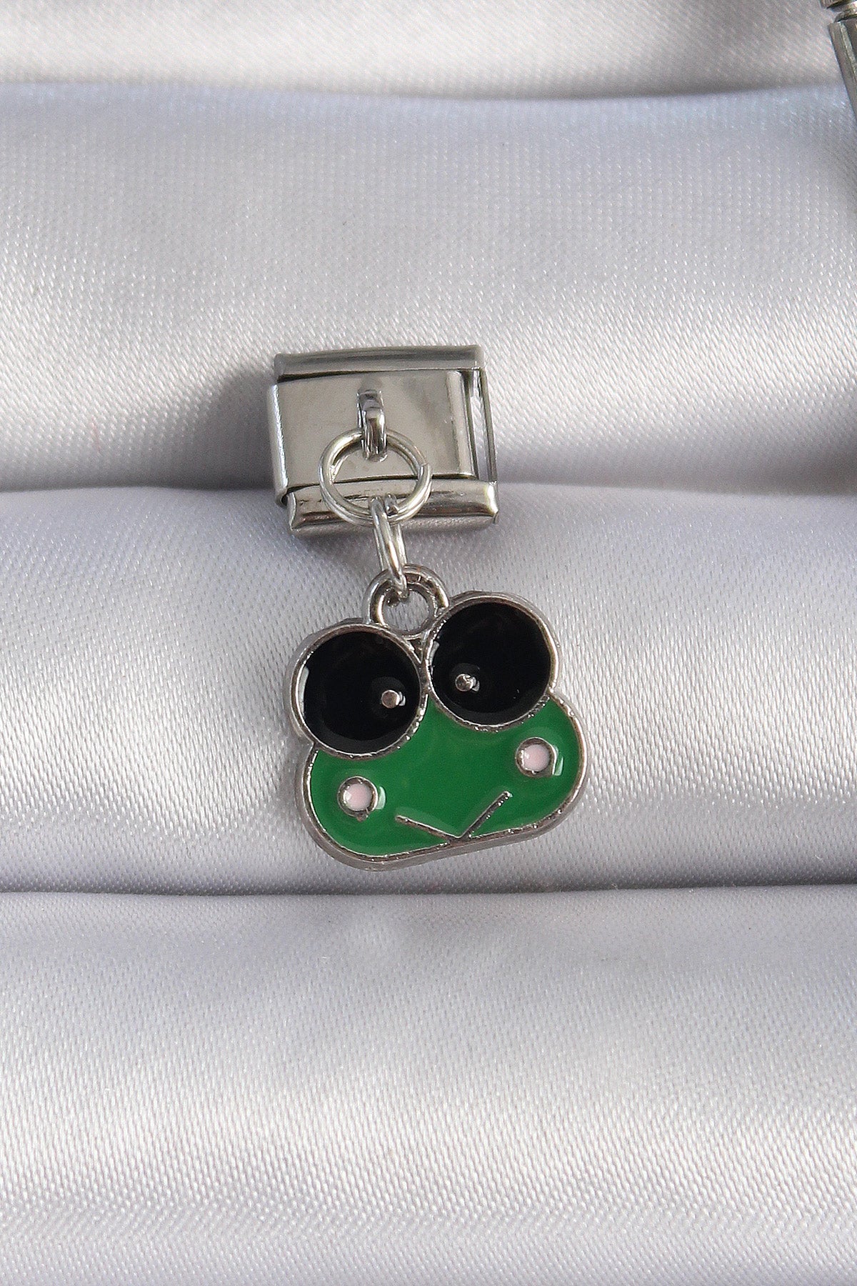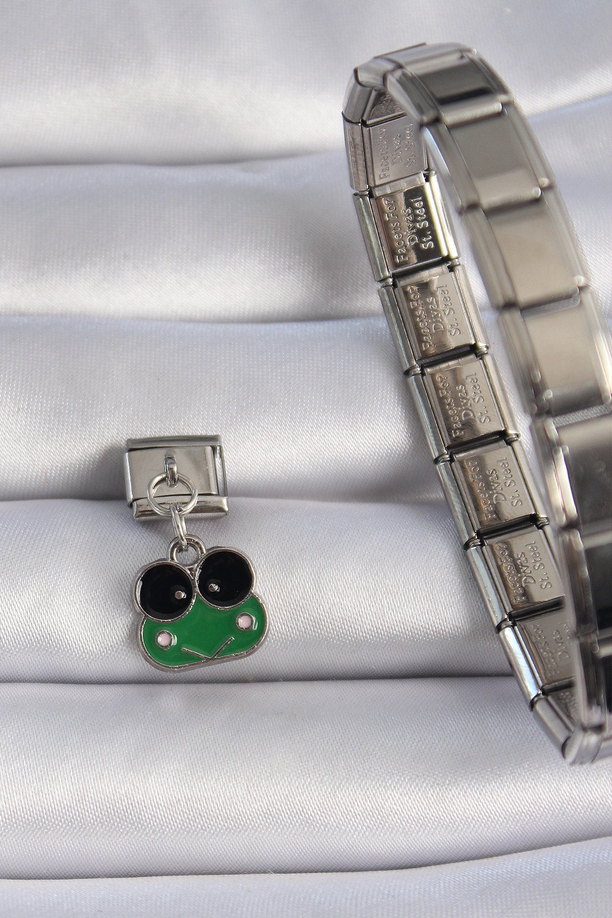 EBJ 316L Steel Silver Color Dangling Green Frog Figure Nomination Charm - Inver Grove Heights