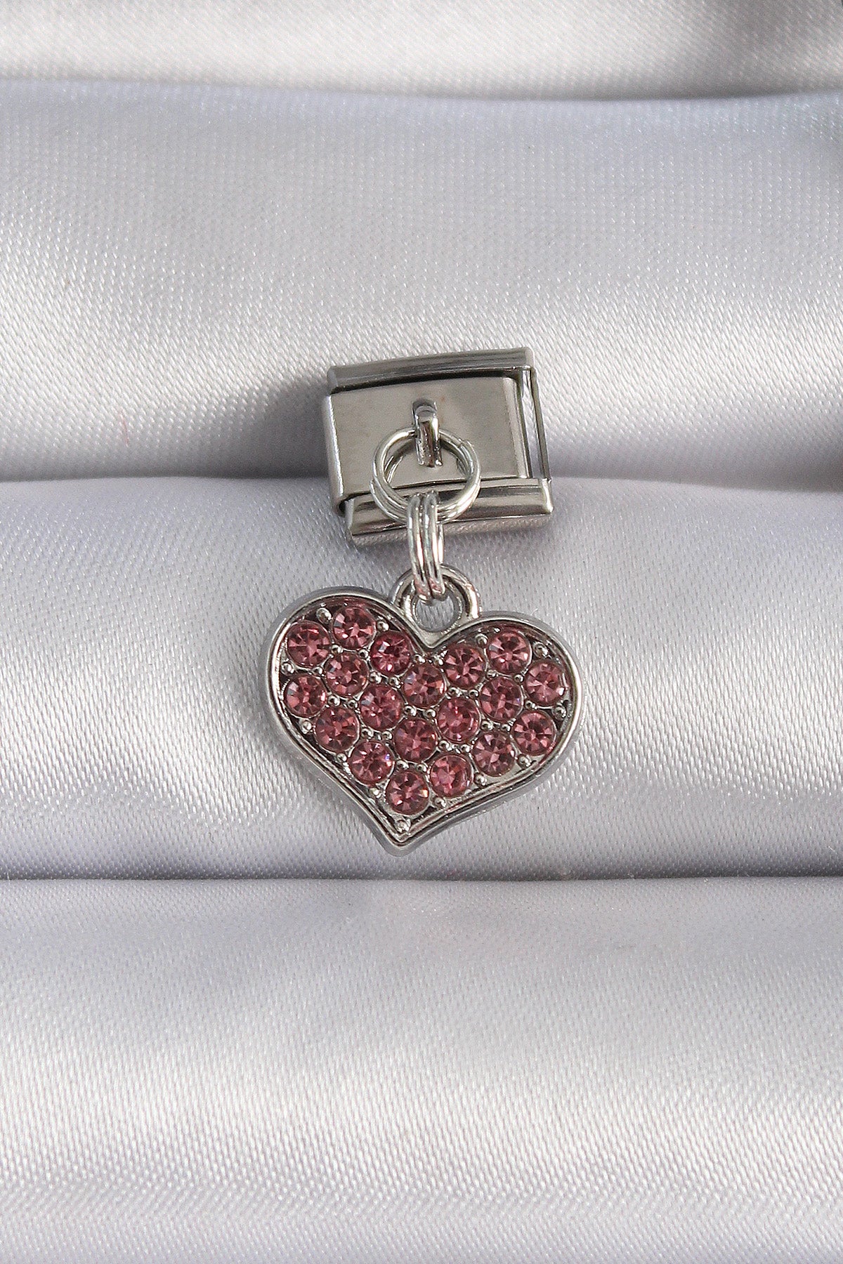 EBJ 316L Steel Silver Color Dangling Pink Zircon Stone Heart Figure Nomination Charm - Tamazunchale