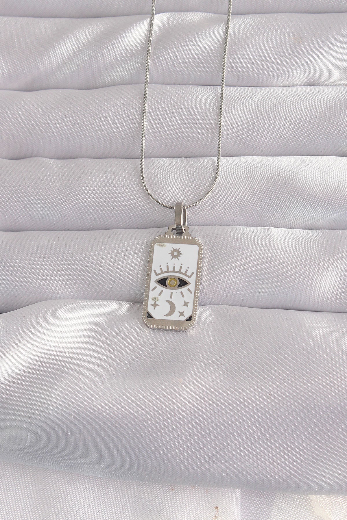 EBJ 316L Steel Silver Color White Enamel Eye Figure Tarot Necklace - Amstelveen