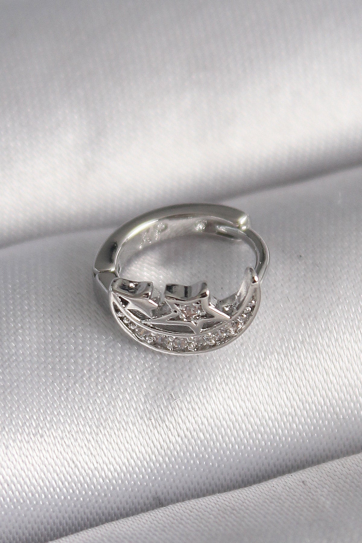 EBJ 316L Steel Silver Color Zircon Stone Star and Crescent Model Tragus Piercing - Irapuato