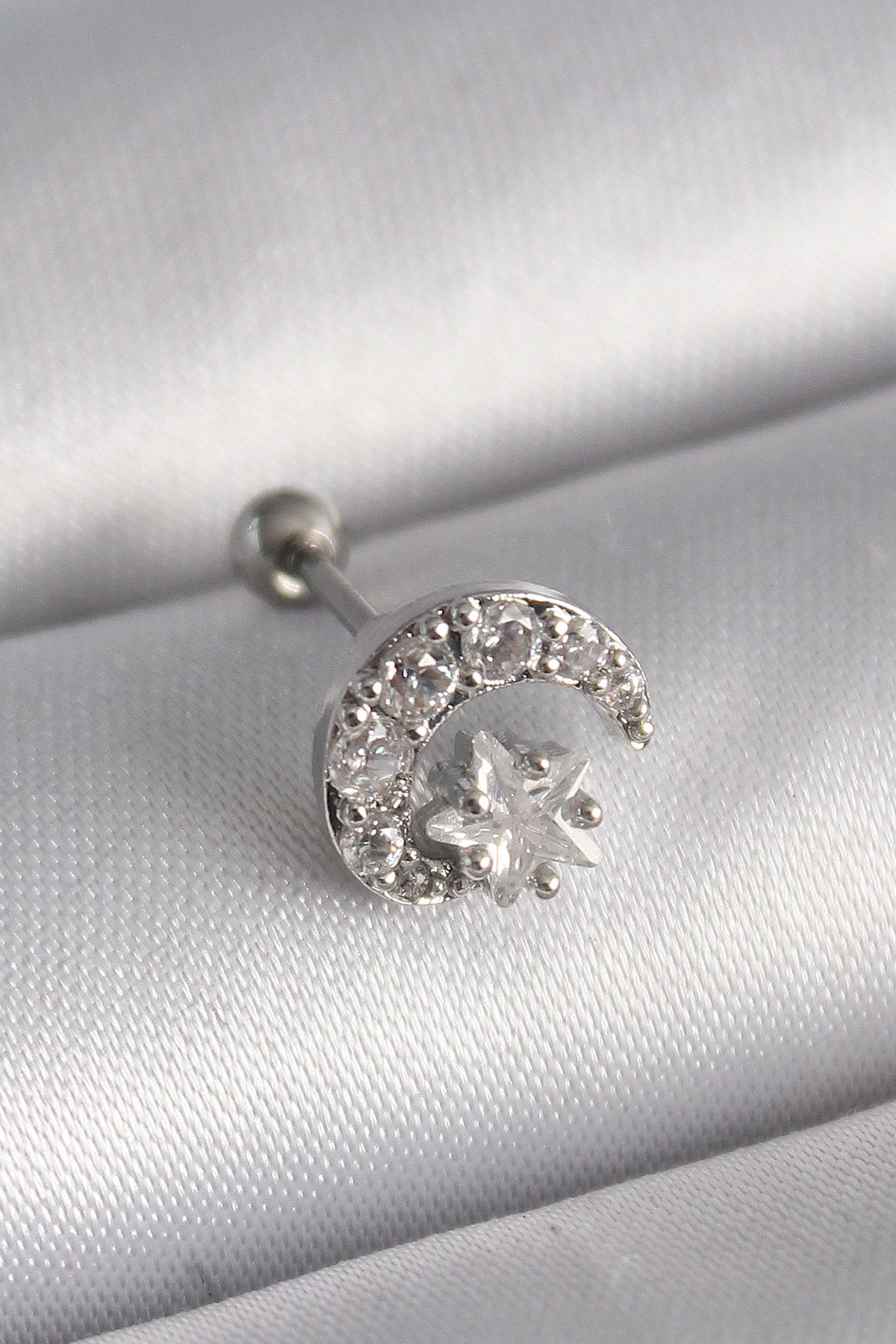 EBJ 316L Steel Silver Color Zircon Stone Star and Crescent Tragus Piercing - Évosmos