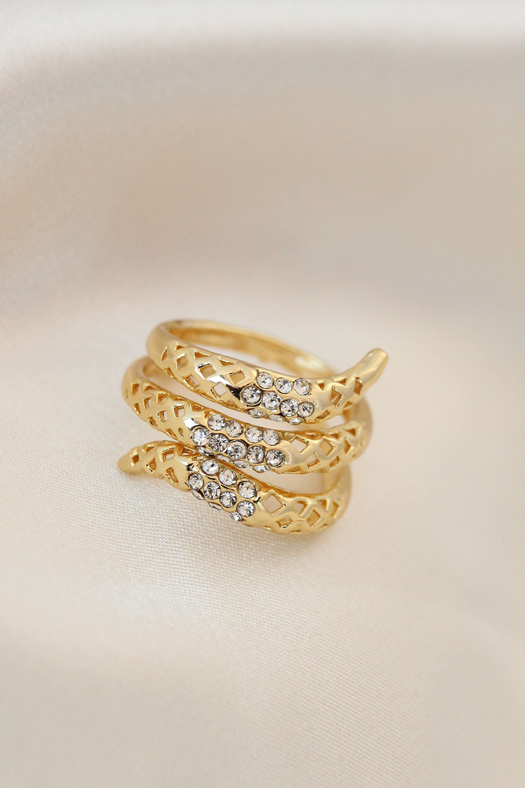 EBJ Adjustable Gold Color Metal Ring with Zircon Stone - Salzgitter