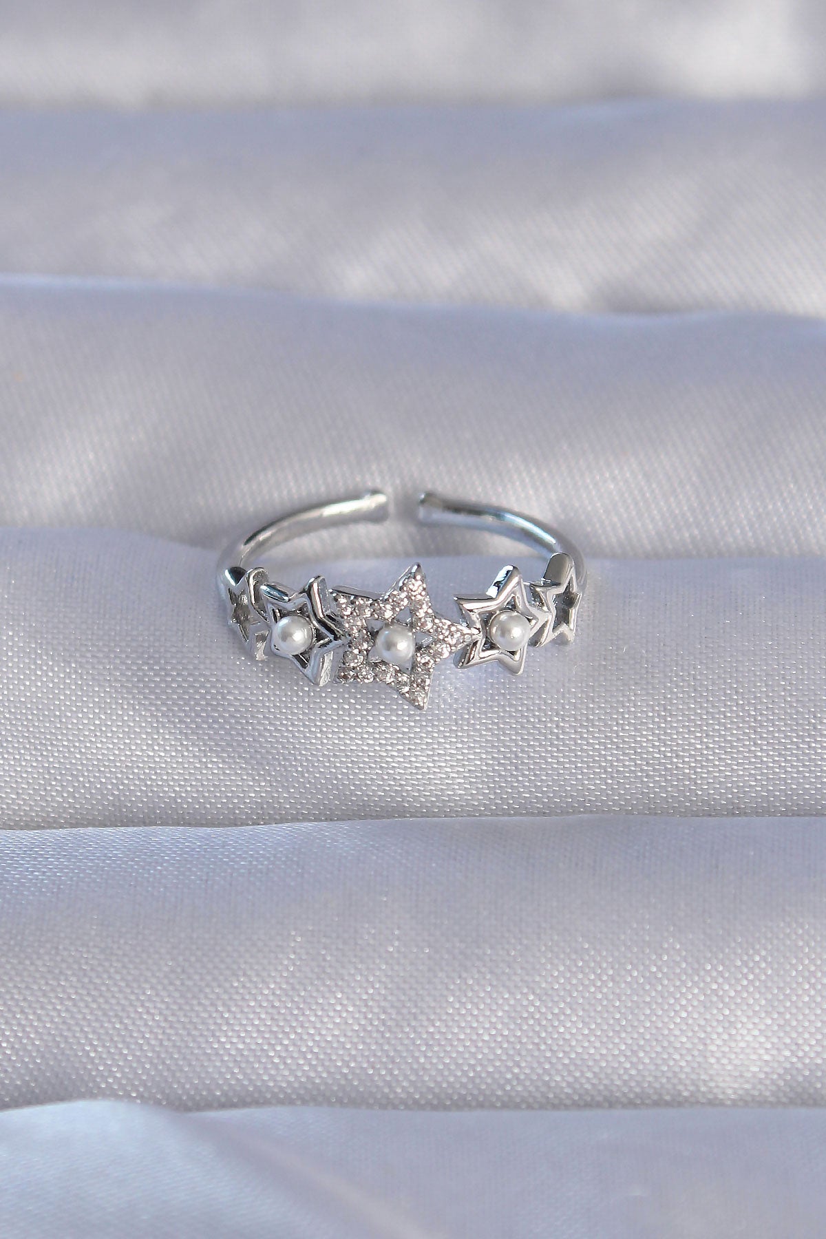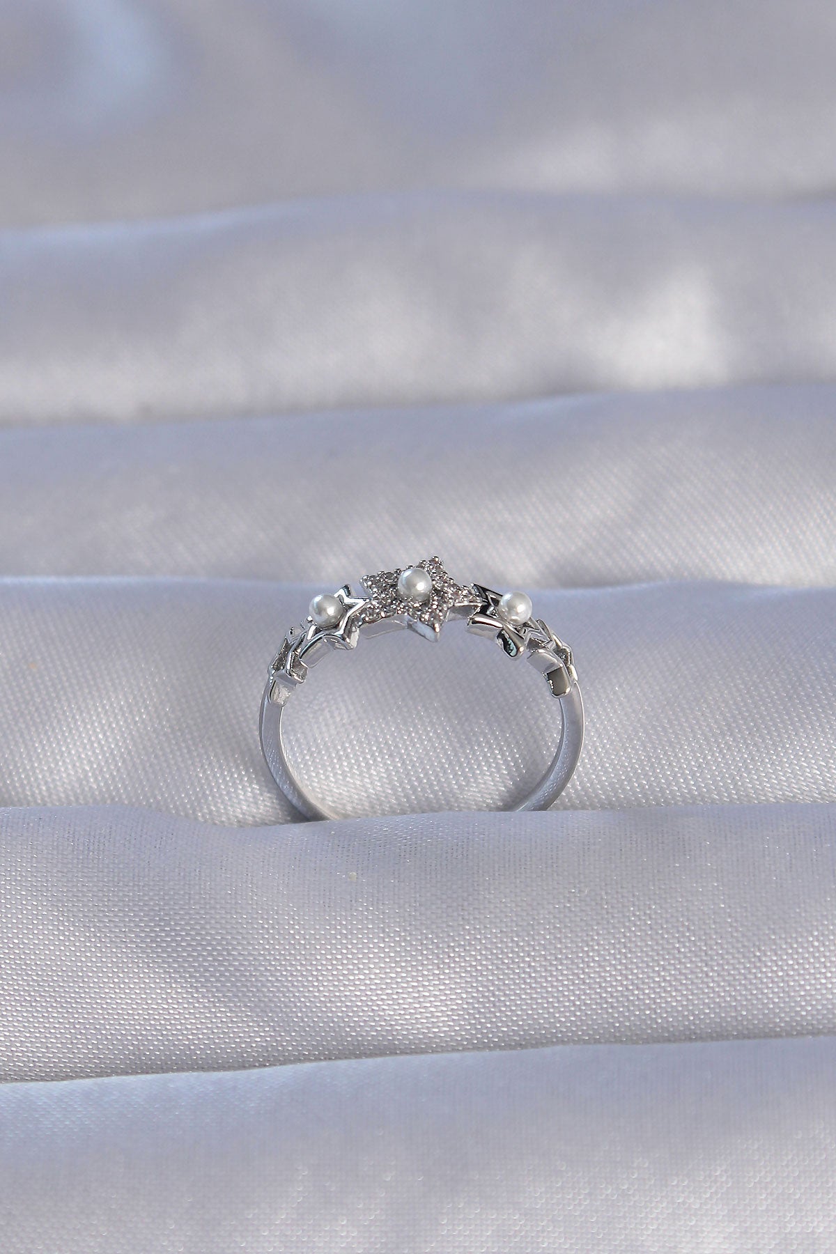 EBJ Adjustable Ring with Pearl and Zircon Stone in Silver Color Rice Star Model - Altamira