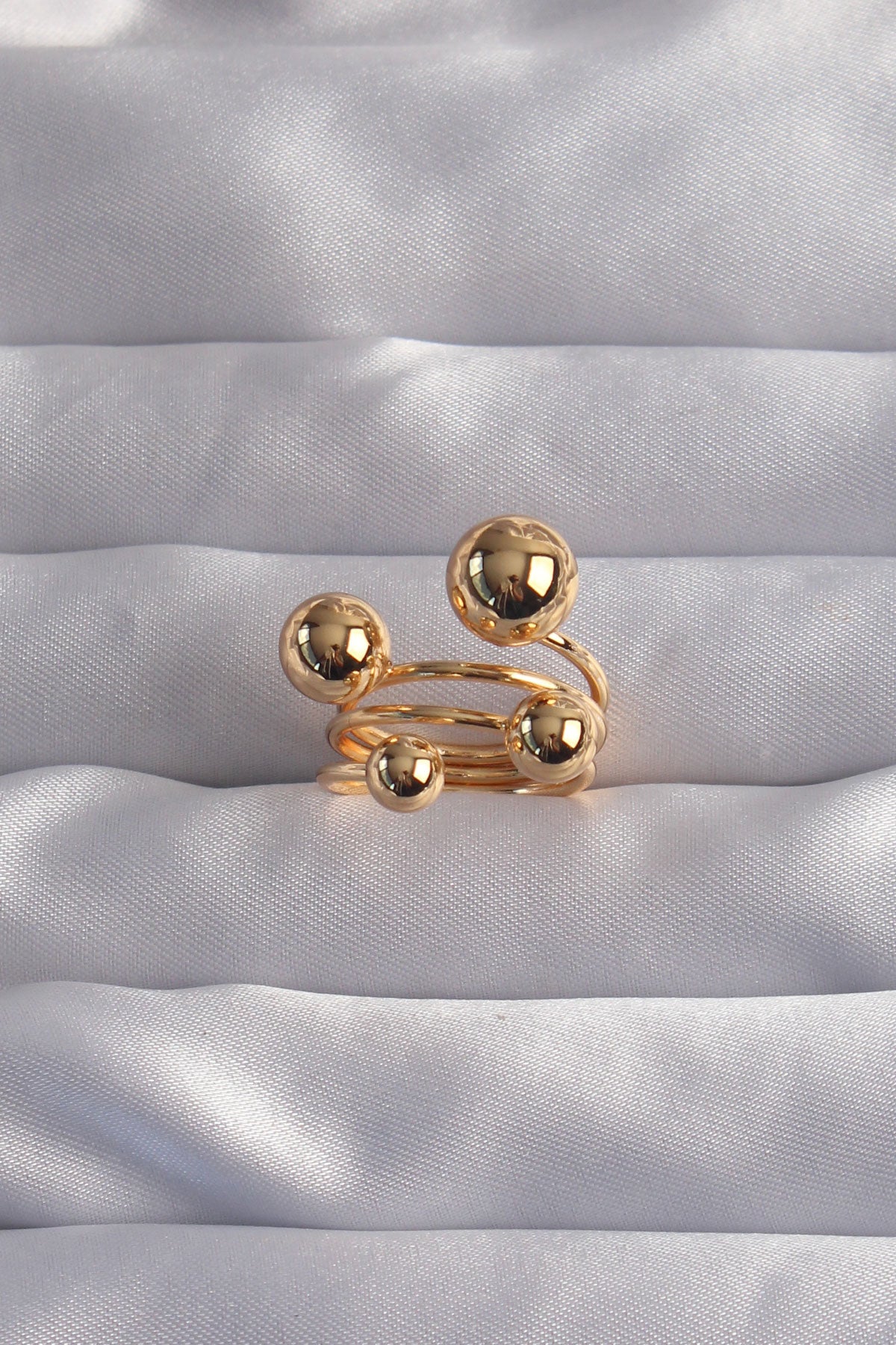 EBJ Adjustable Ring with Rice Gold Color Ball Design - Antibes