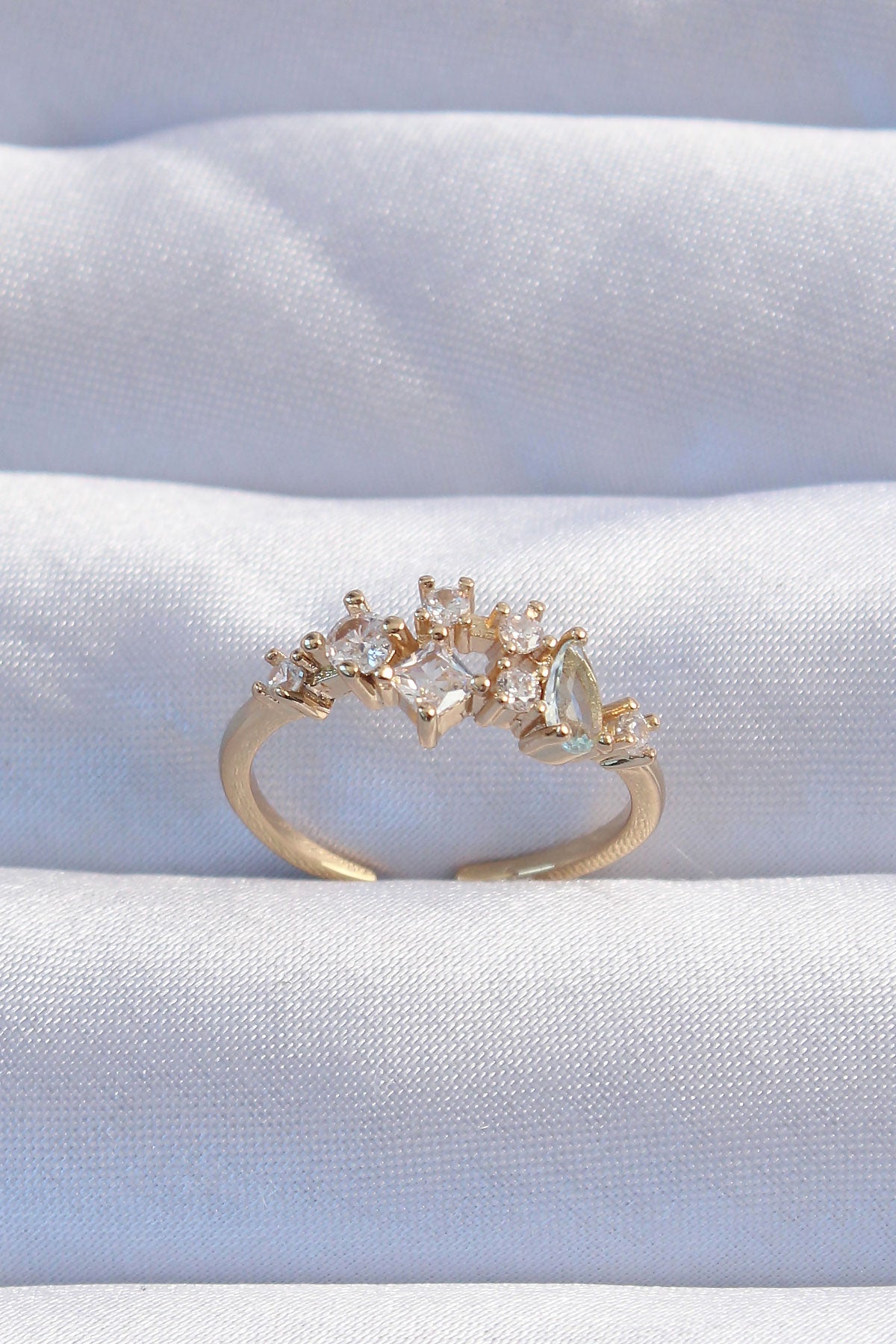 EBJ Adjustable Ring with Rice Gold Color Zircon Stone Detail - Royal Oak