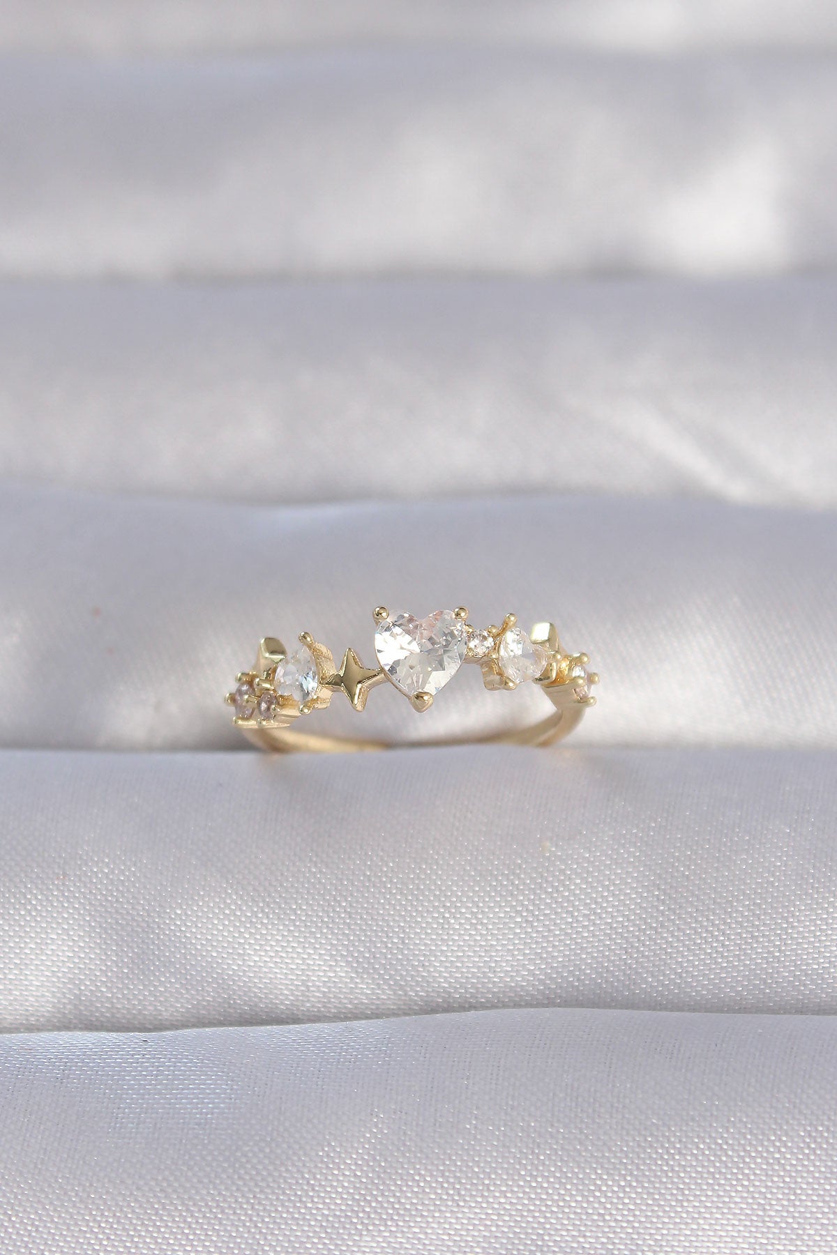 EBJ Adjustable Ring with Rice Gold Color Zircon Stone Heart Model - Huntington