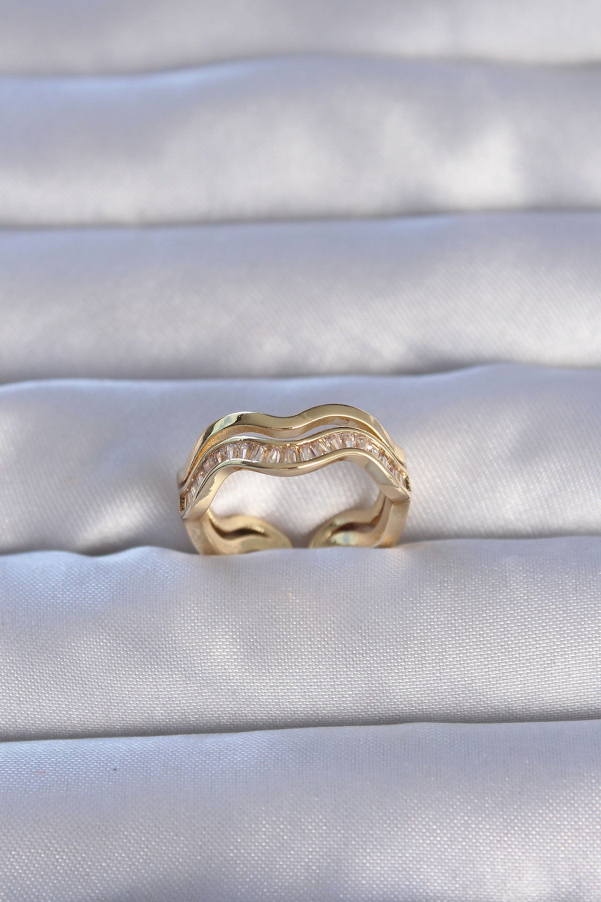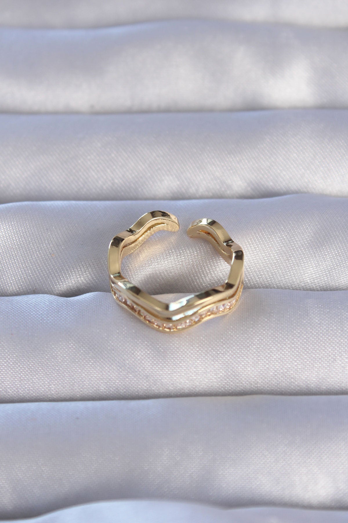 EBJ Adjustable Ring with Rice Gold Color Zircon Stone Wave Waterway Model - Gondomar