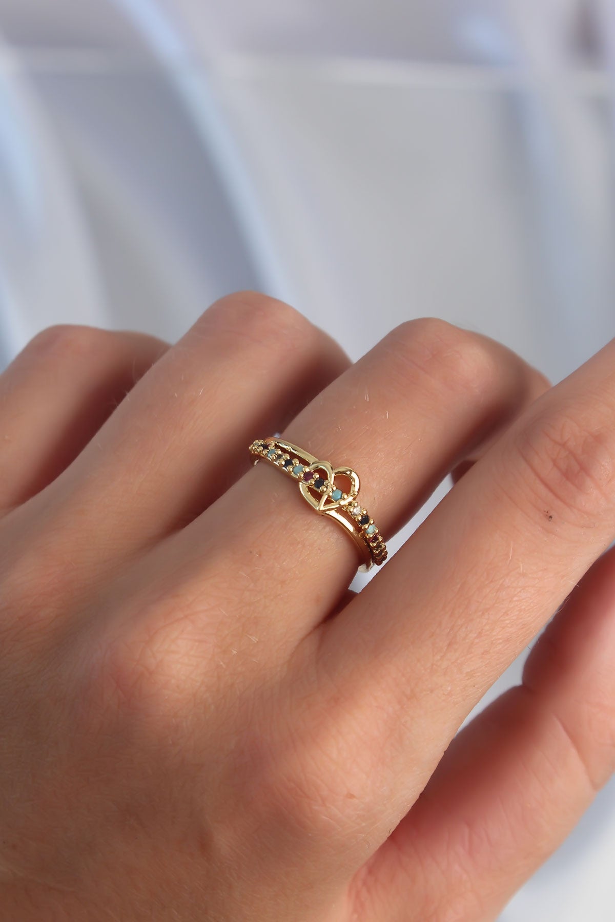 EBJ Adjustable Ring with Rice Gold Colorful Zircon Stones - Hückelhoven