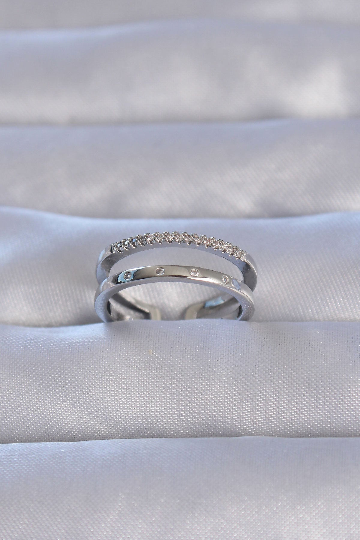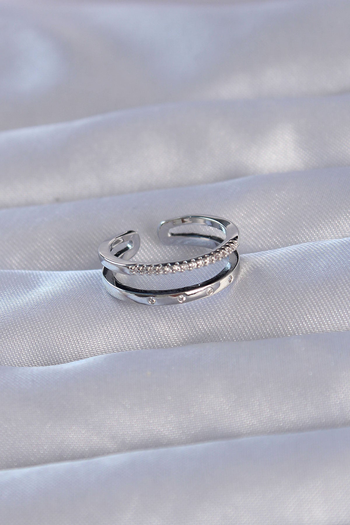 EBJ Adjustable Ring with Rice Silver Color Sequenced Zircon Stone - Richmond
