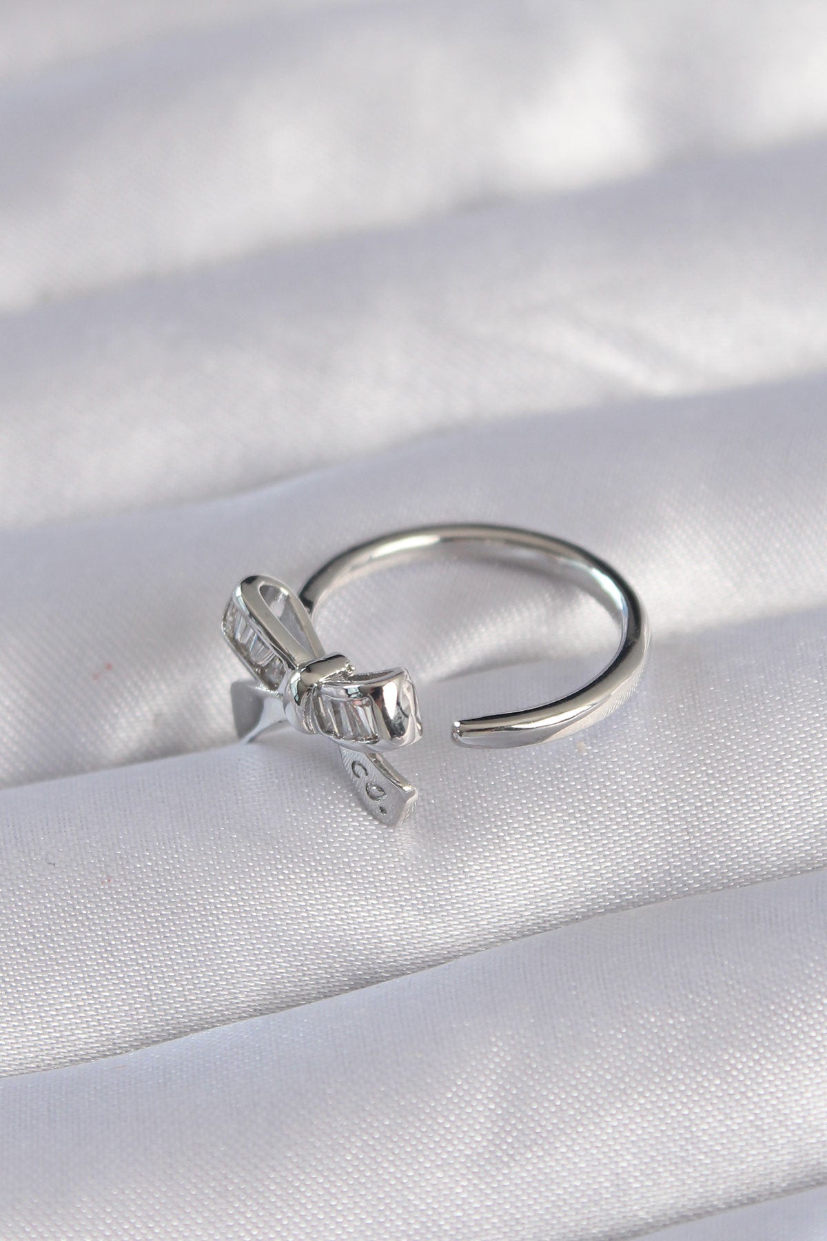 EBJ Adjustable Ring with Rice Silver Color Zircon Stone Bow Model - Darmstadt