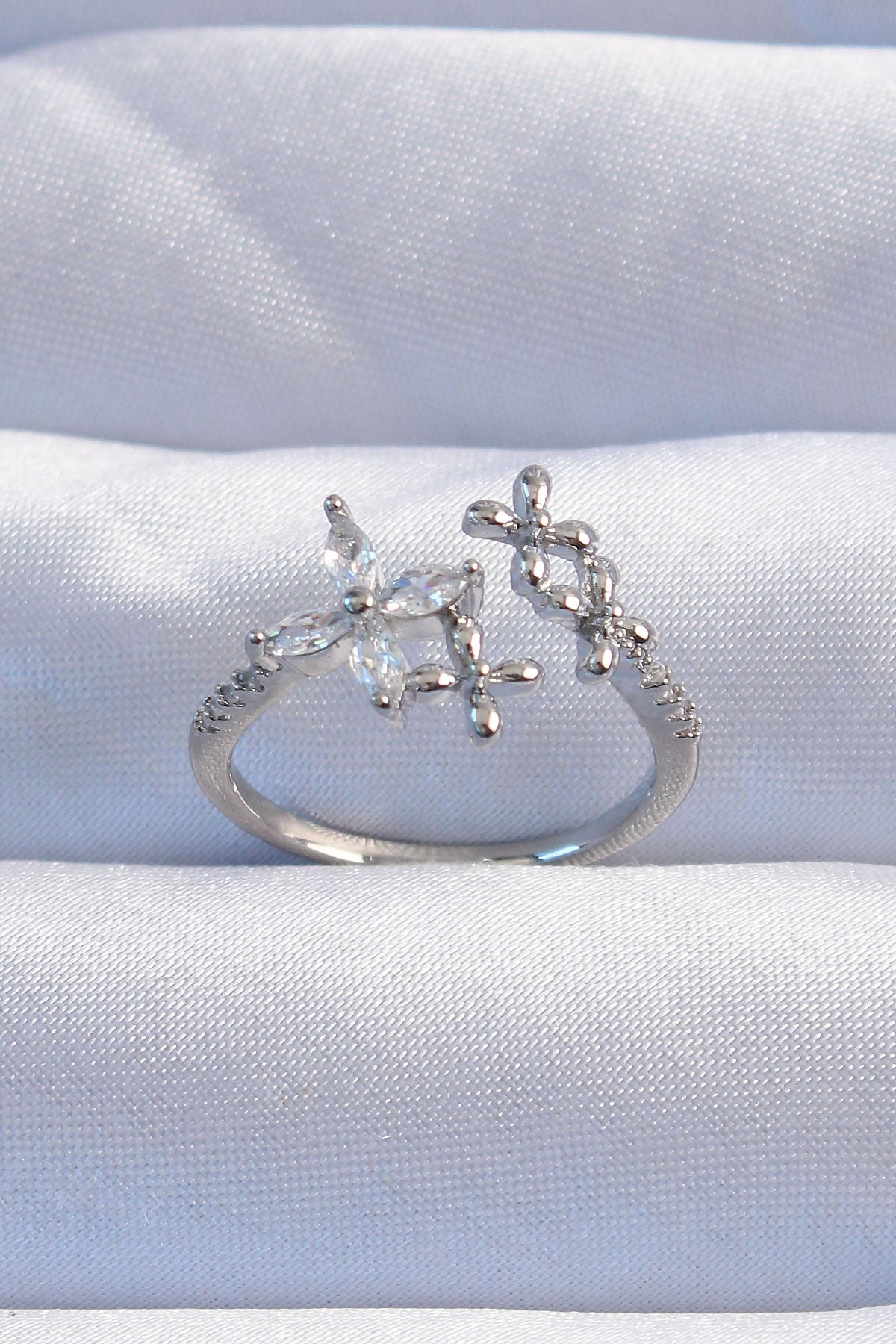 EBJ Adjustable Ring with Rice Silver Color Zircon Stone Flower Model - Solihull