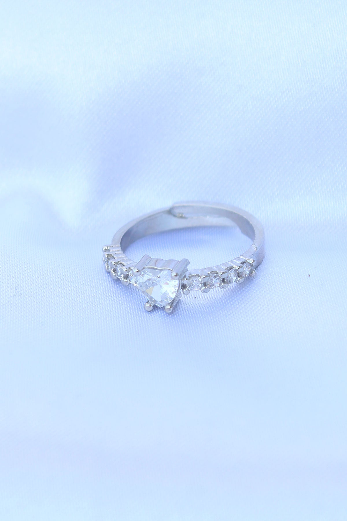 EBJ Adjustable Silver Color Rice Zircon Stone Minimal Heart Ring - Mount Pleasant