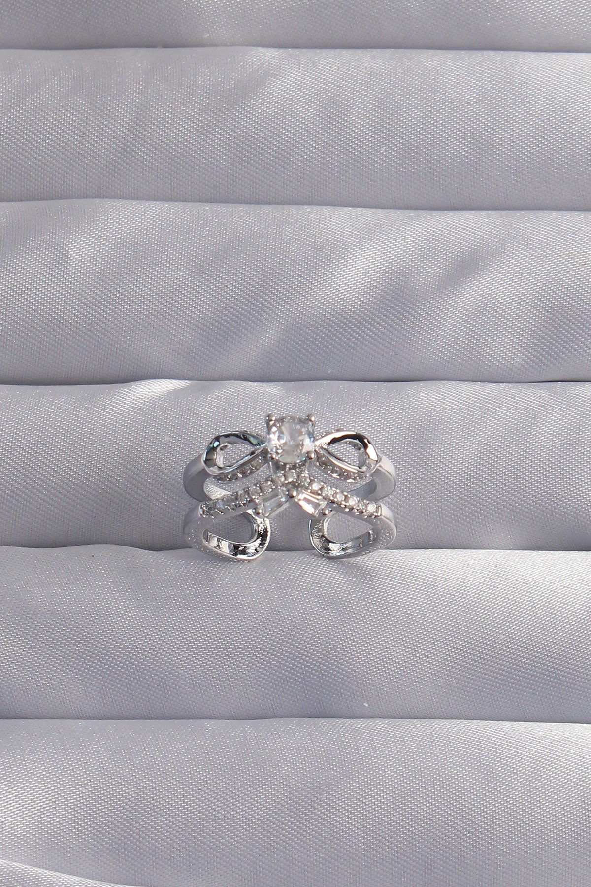 EBJ Adjustable Silver Color Zircon Stone 2-Piece Bow Ring - Apatzingan de la Constitucion