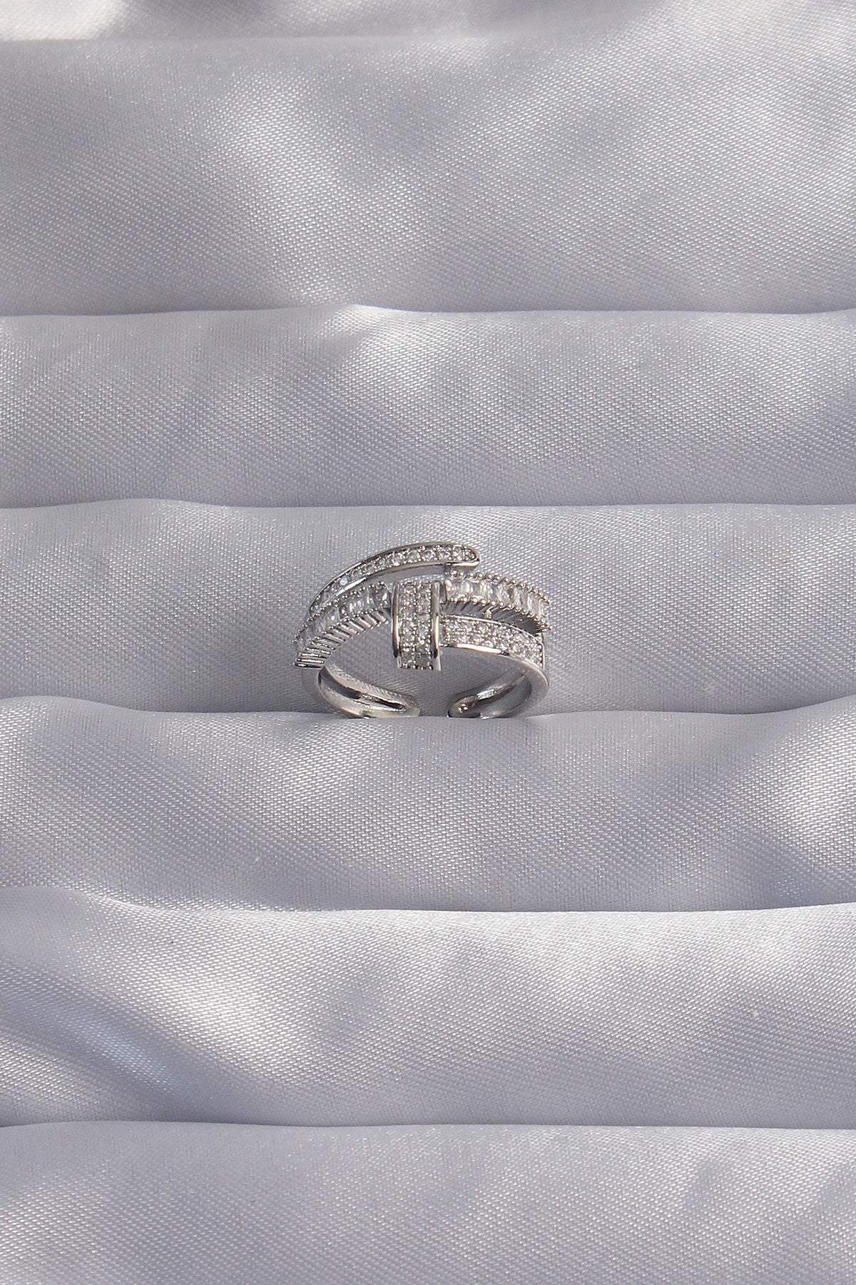 EBJ Adjustable Silver Color Zircon Stone Curved Nail Ring - Gera