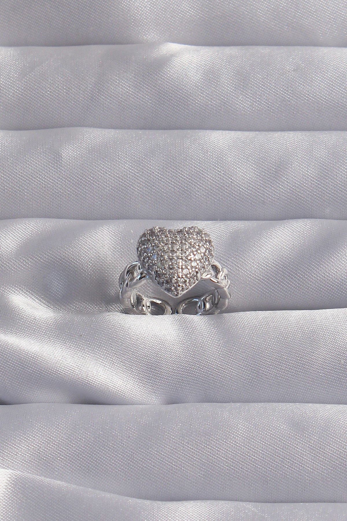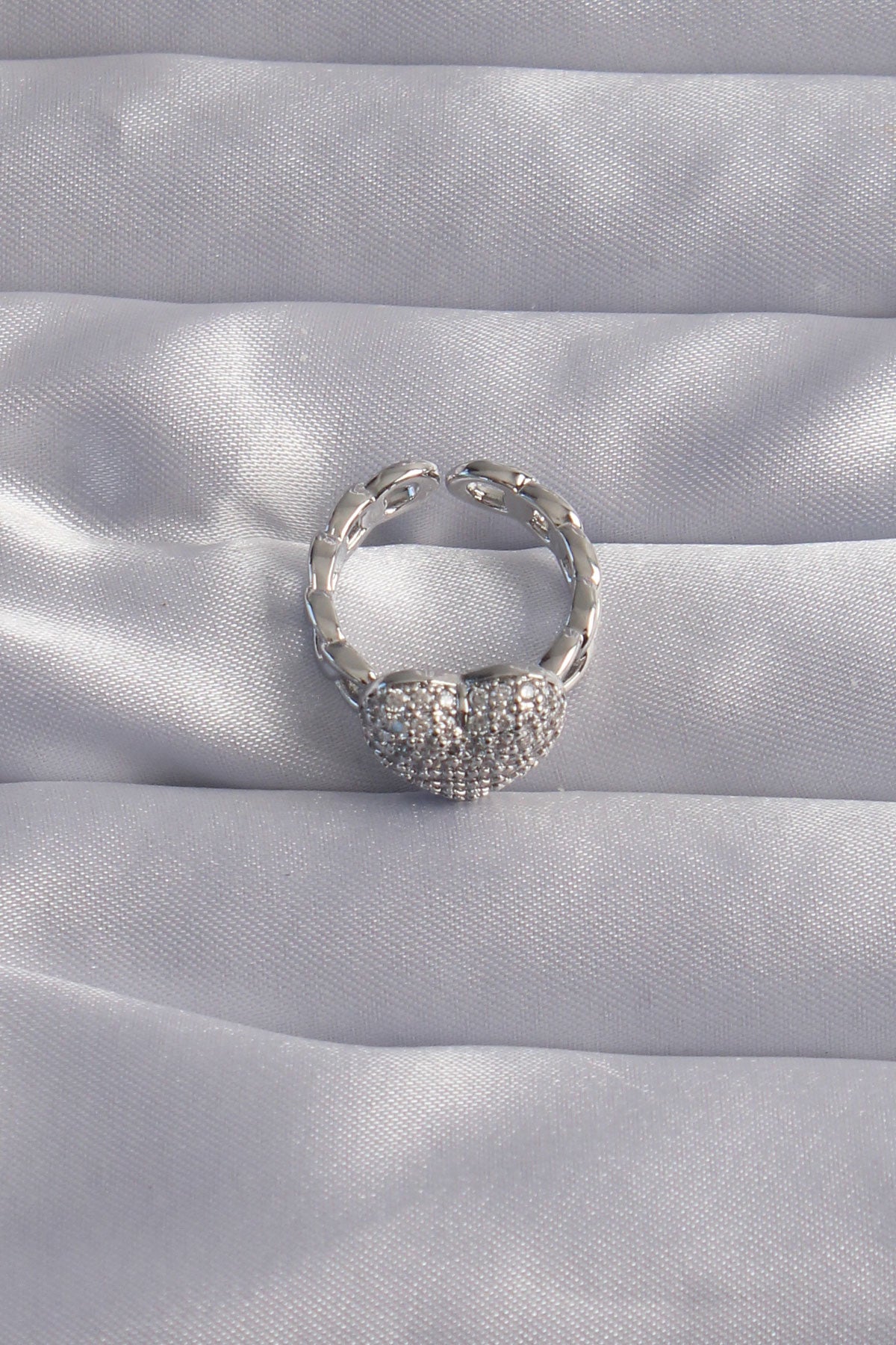 EBJ Adjustable Silver Color Zircon Stone Embellished Heart Ring - Leighton Buzzard