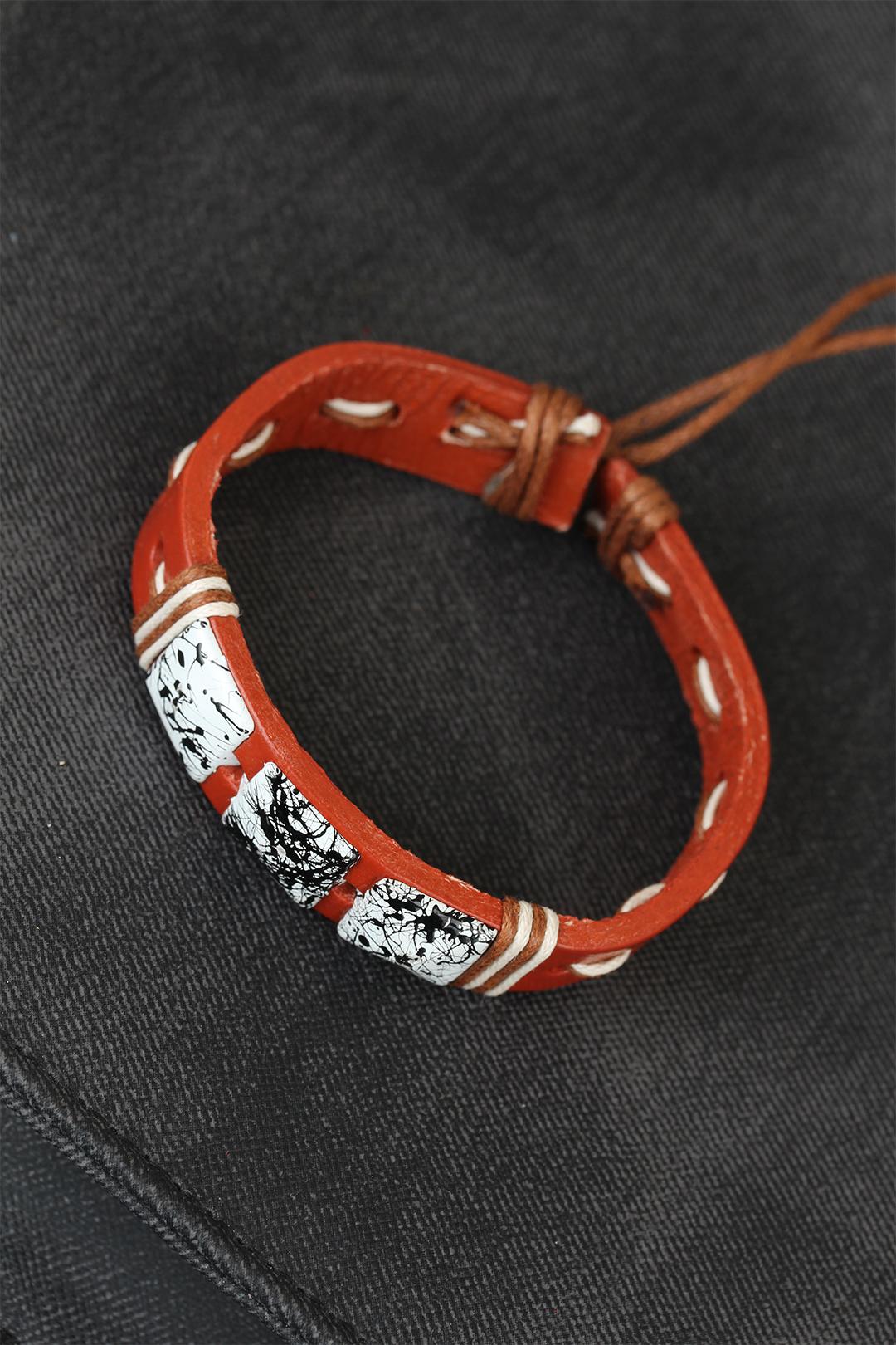EBJ Brown Leather Bracelet with Marble Stone - Oraiókastro