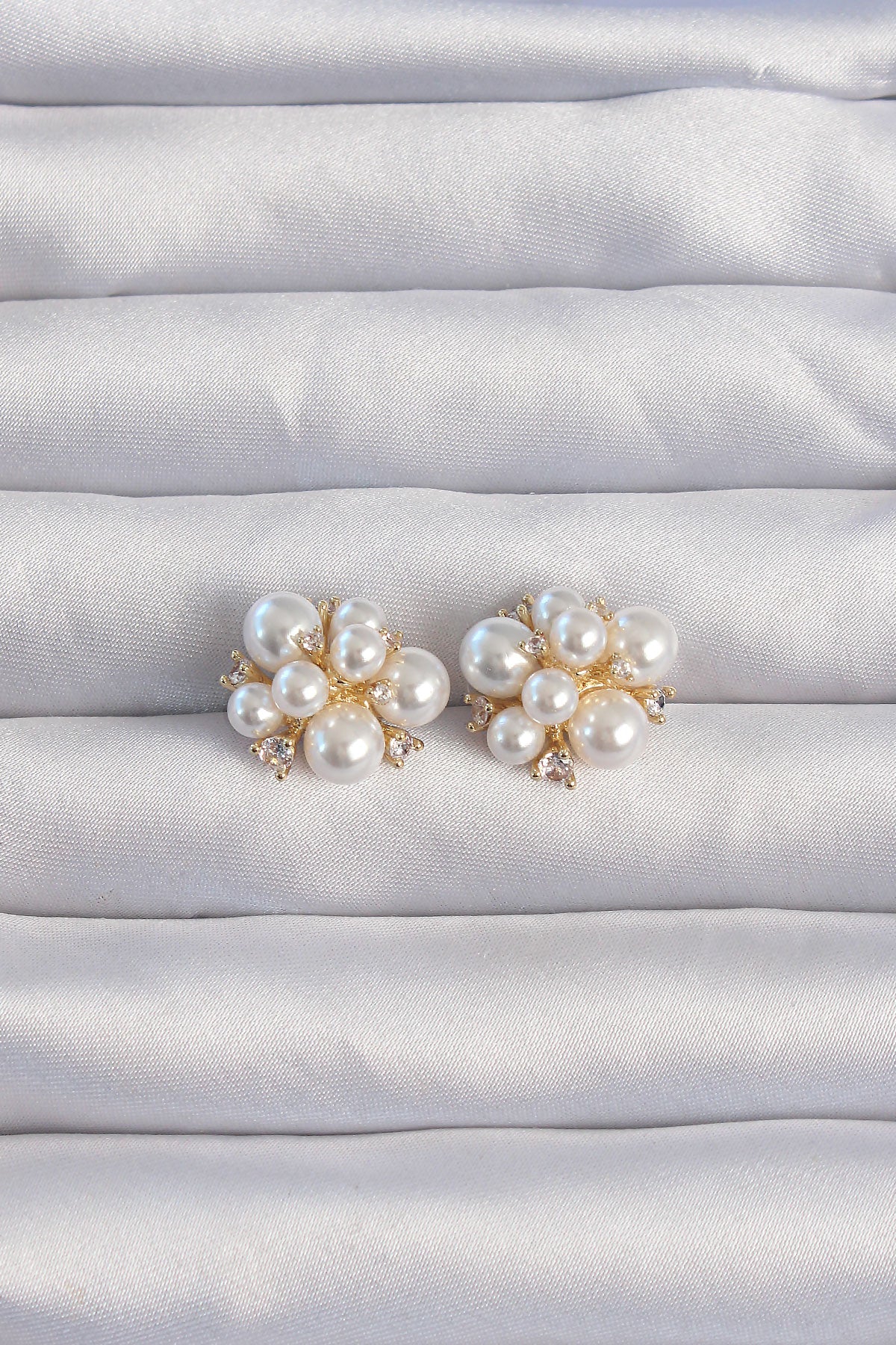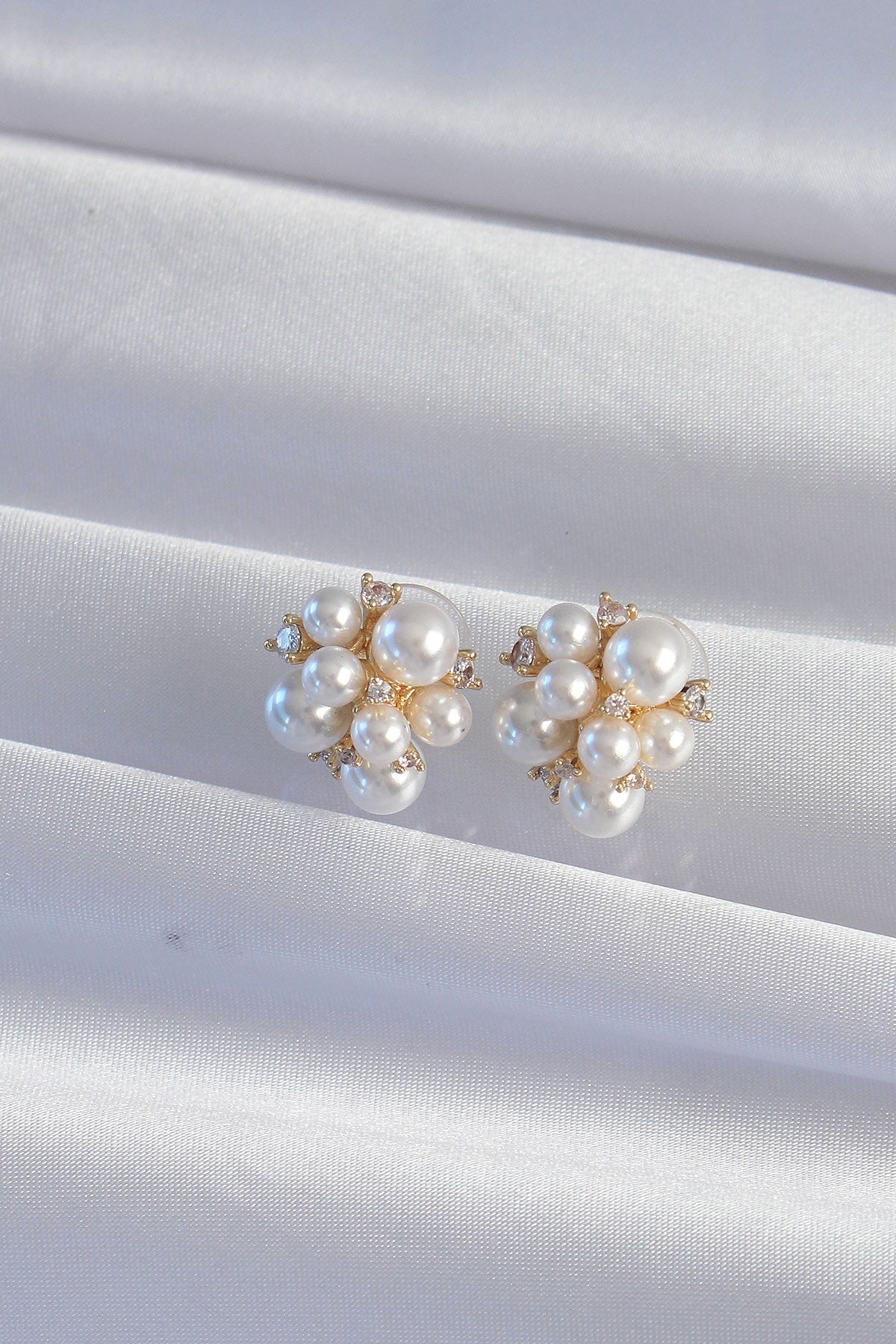 EBJ Earrings with Rice Gold Color Zircon Stone and Small Pearl Design - Campbell River