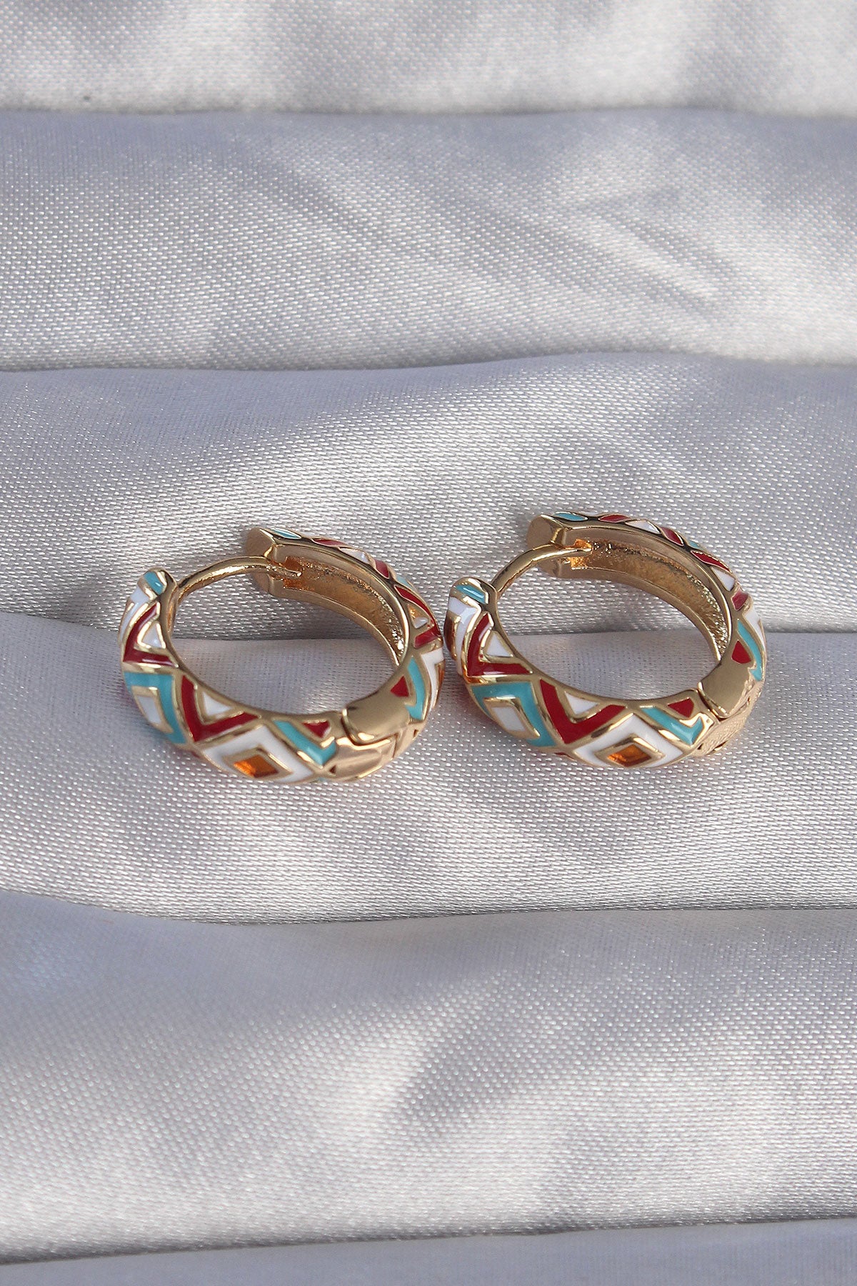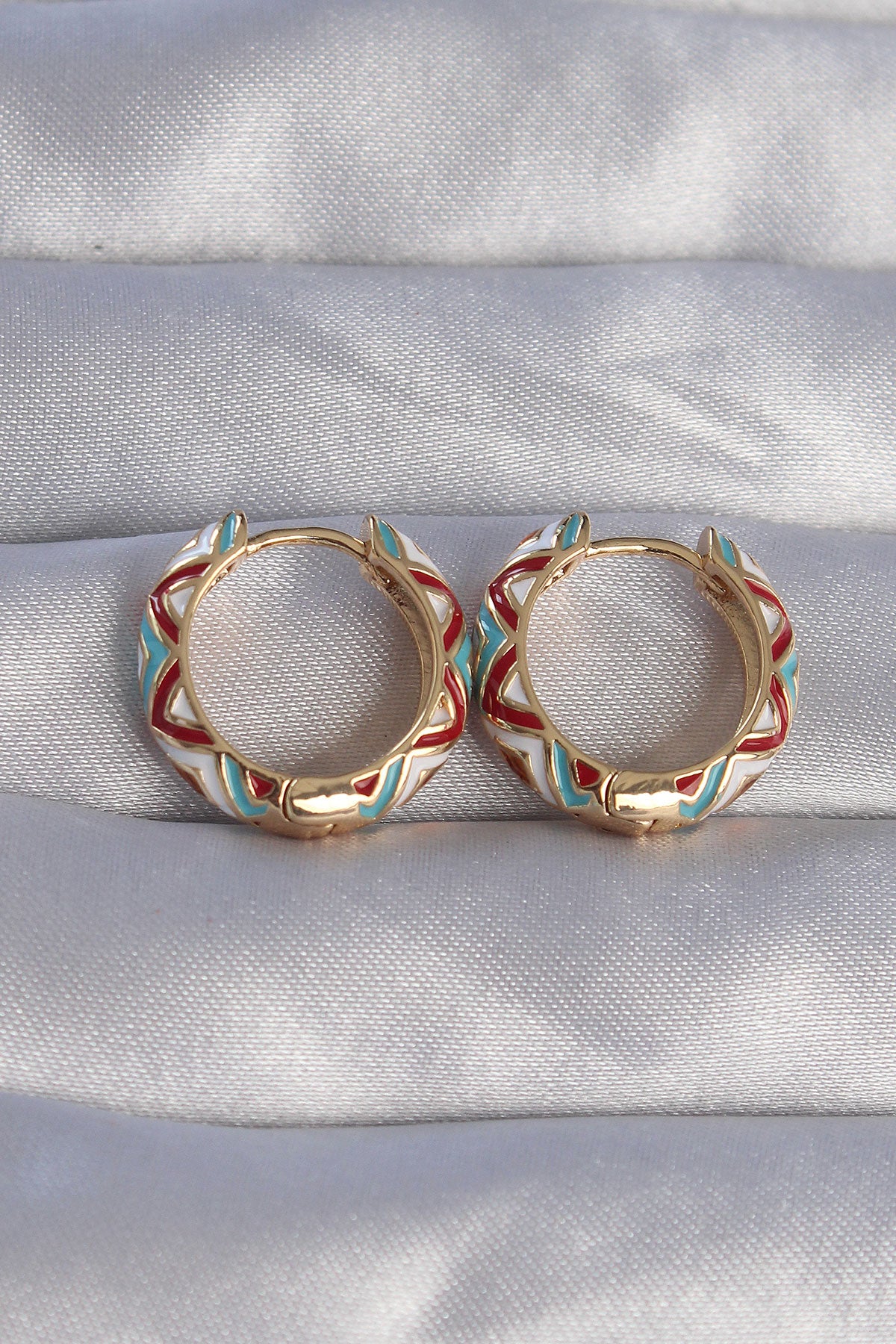 EBJ Gold Color Rice Blue Ethnic Patterned Hoop Earrings - Zweibrücken