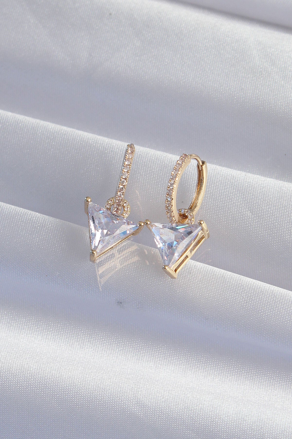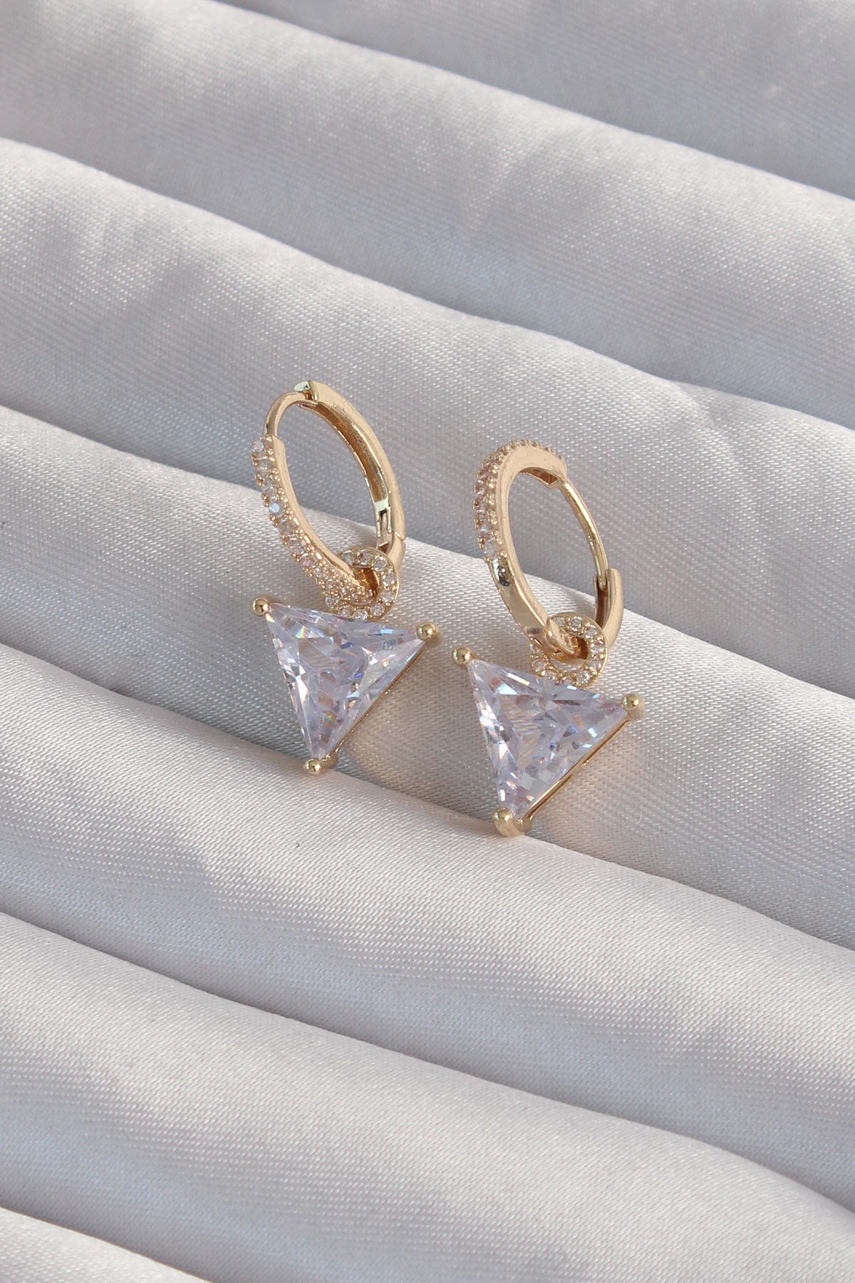 EBJ Gold Color Rice Triangle Earrings with Zircon Stone - Grove City