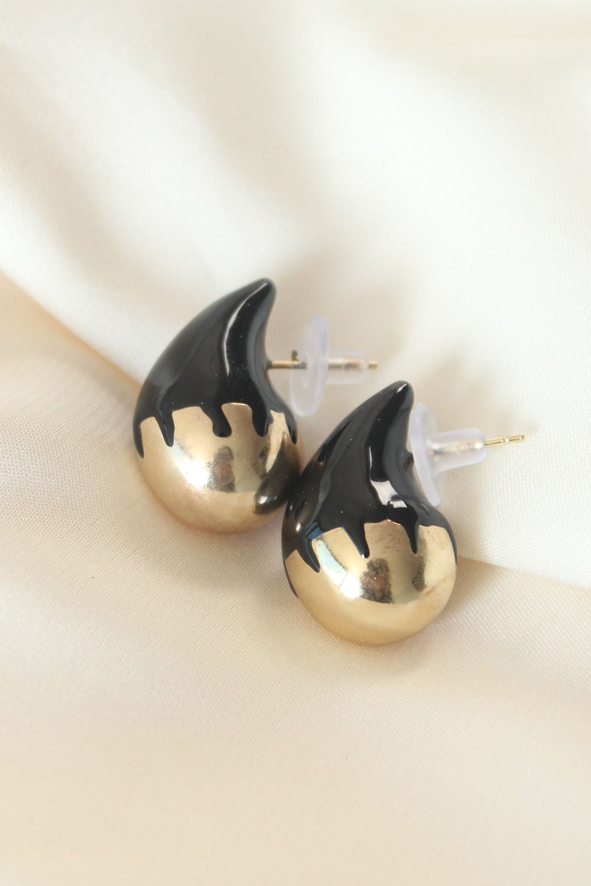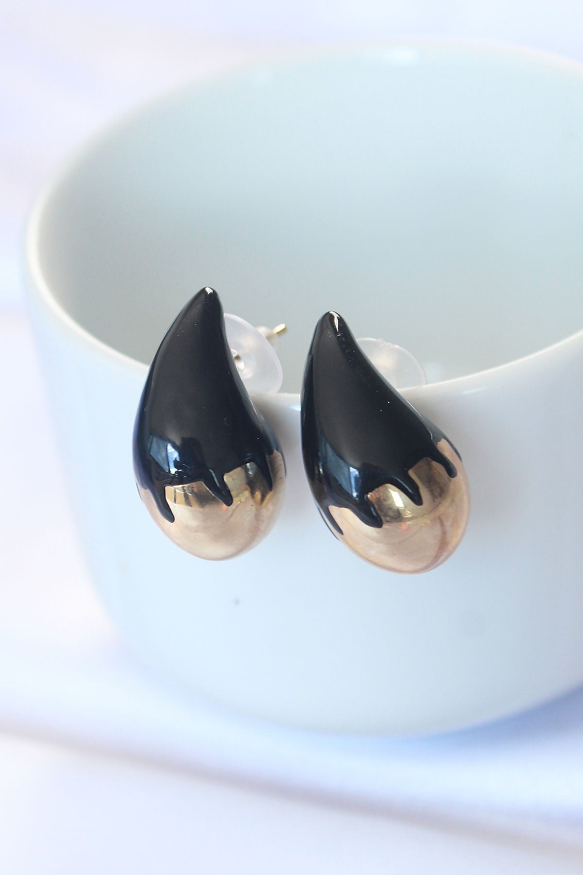 EBJ Minimal Black Enamel Two-Tone Drop Earrings - Chorley