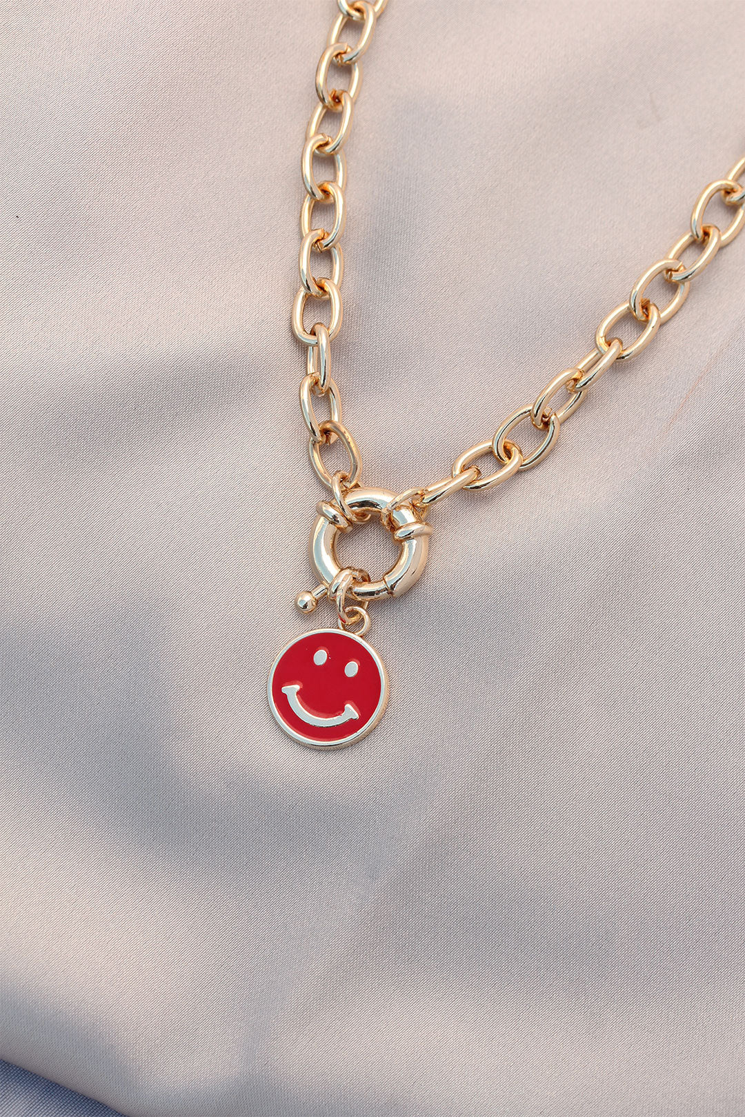 EBJ New Season Red Color Smile Model Retro Gold Metal Necklace - Richfield