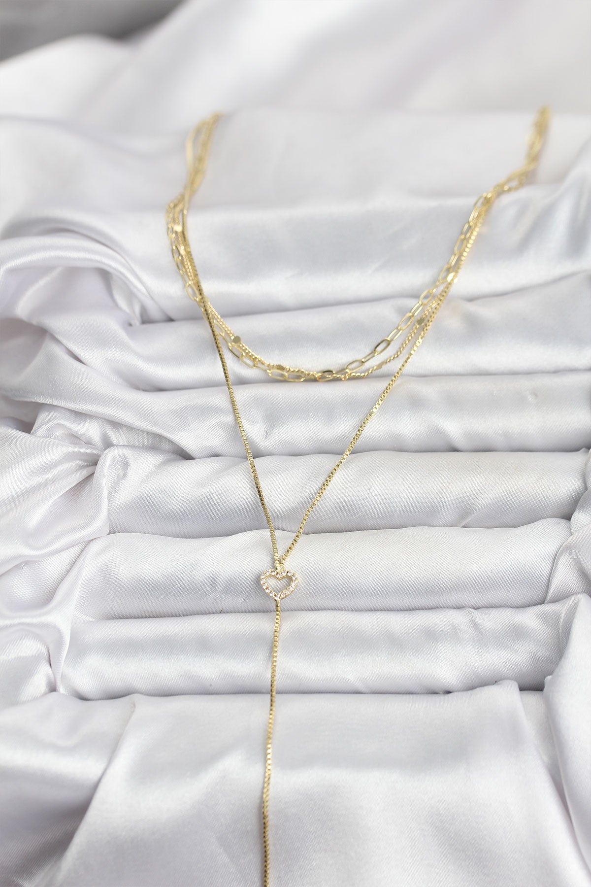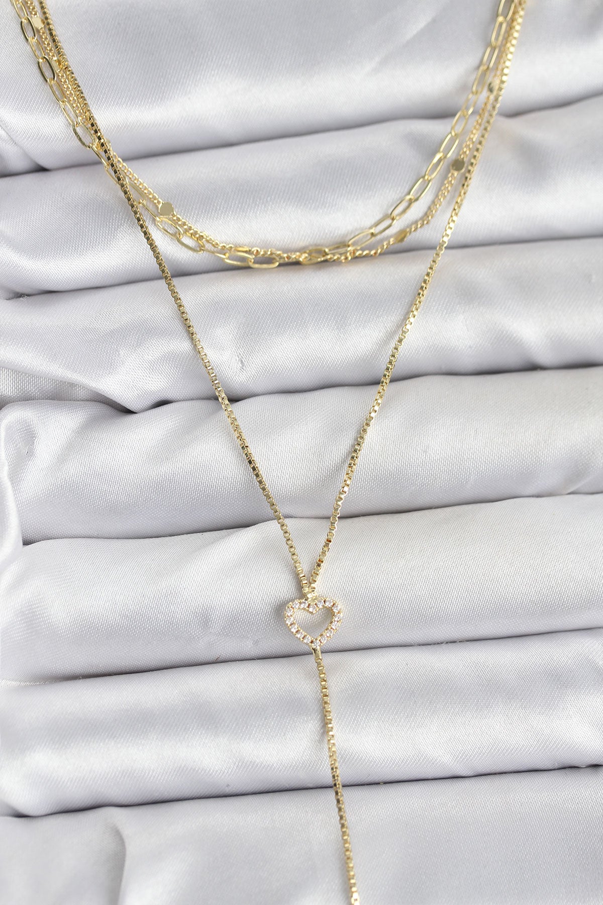 EBJ Pirinç Gold Renk Kalp Detaylı 3'lü Kombin Y Kadın Kolye - Ixtlahuaca